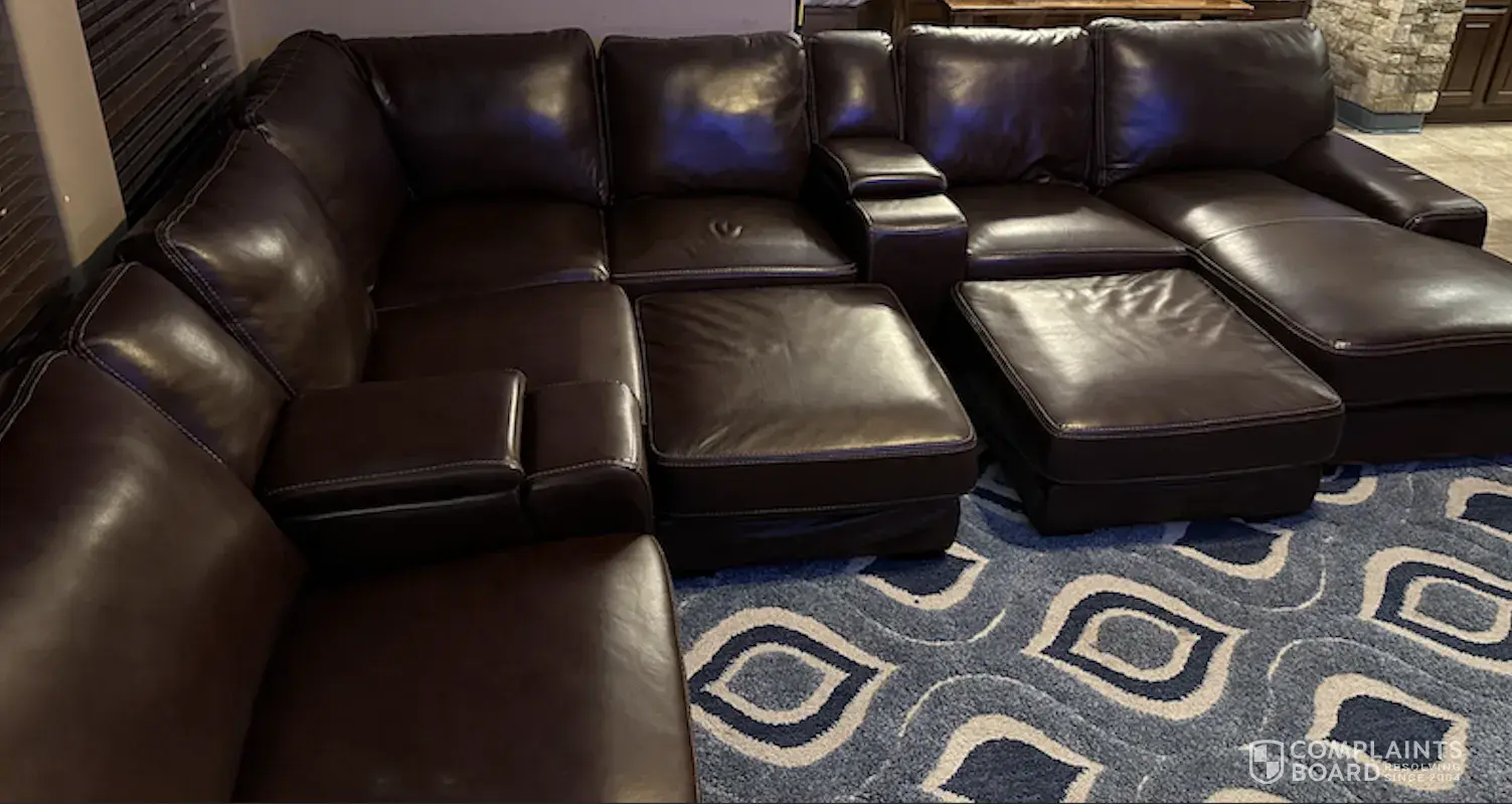 Desired outcome: I want a full refund and a discount on an actual leather sectional.