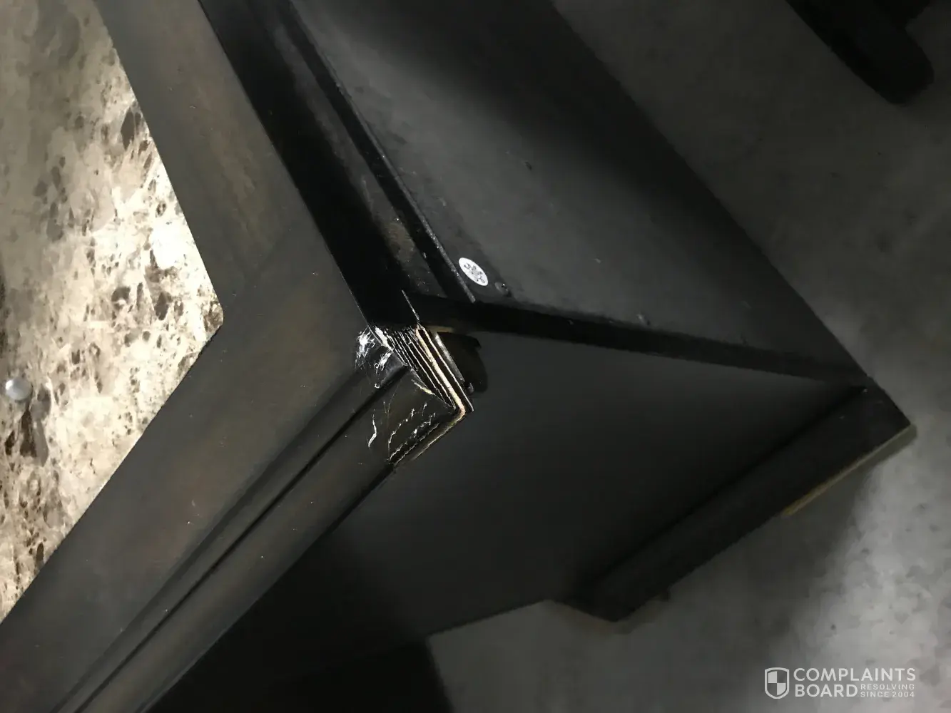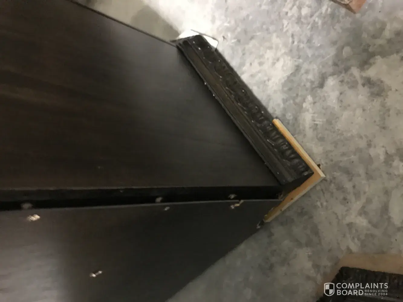 We purchased the cabinet on July 28th, 2017 with an expected delivery date of August 9th, 2017. When our new cabinet arrived it looked terrible. The wood was dirty, the glass was filthy and had dried water droplets inside. The base of the cabinet had a piece missing exposing raw wood, two of the legs looked as though they had been sanded down, the area above the doors had several dents and the doors did not line up when shut. We pointed these issues out to the delivery driver who told us to call the 800 number and request a technician because there was nothing he could do about it. We called the 800 number as instructed and were told that it could not be fixed because of the exposed wood and that a replacement would have to be sent out. We arranged to have the replacement cabinet delivered on August 18th, 2017 between 10am -2pm.