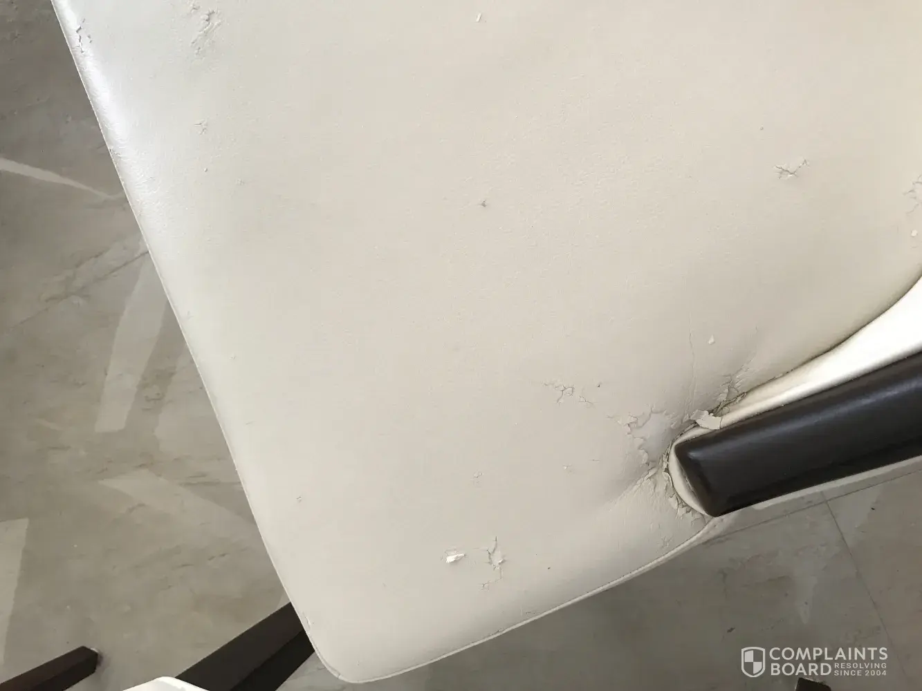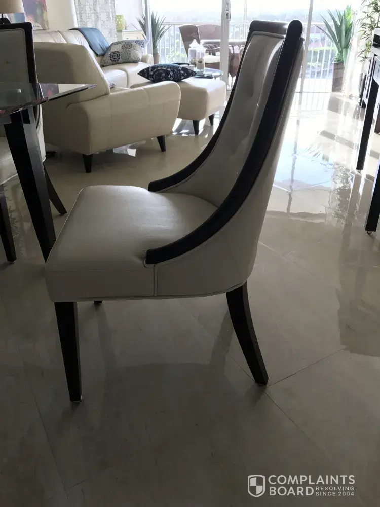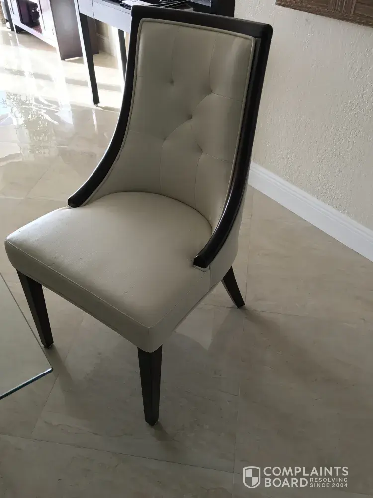 I want to make a complaint about the quality of my 6 dining table chairs. Purchased at room to go. We are rarely siting at the dining table as we are using our apt as a secondary residence and eating outside most of the time. We had a new AC installed so the humidity is not an issue.