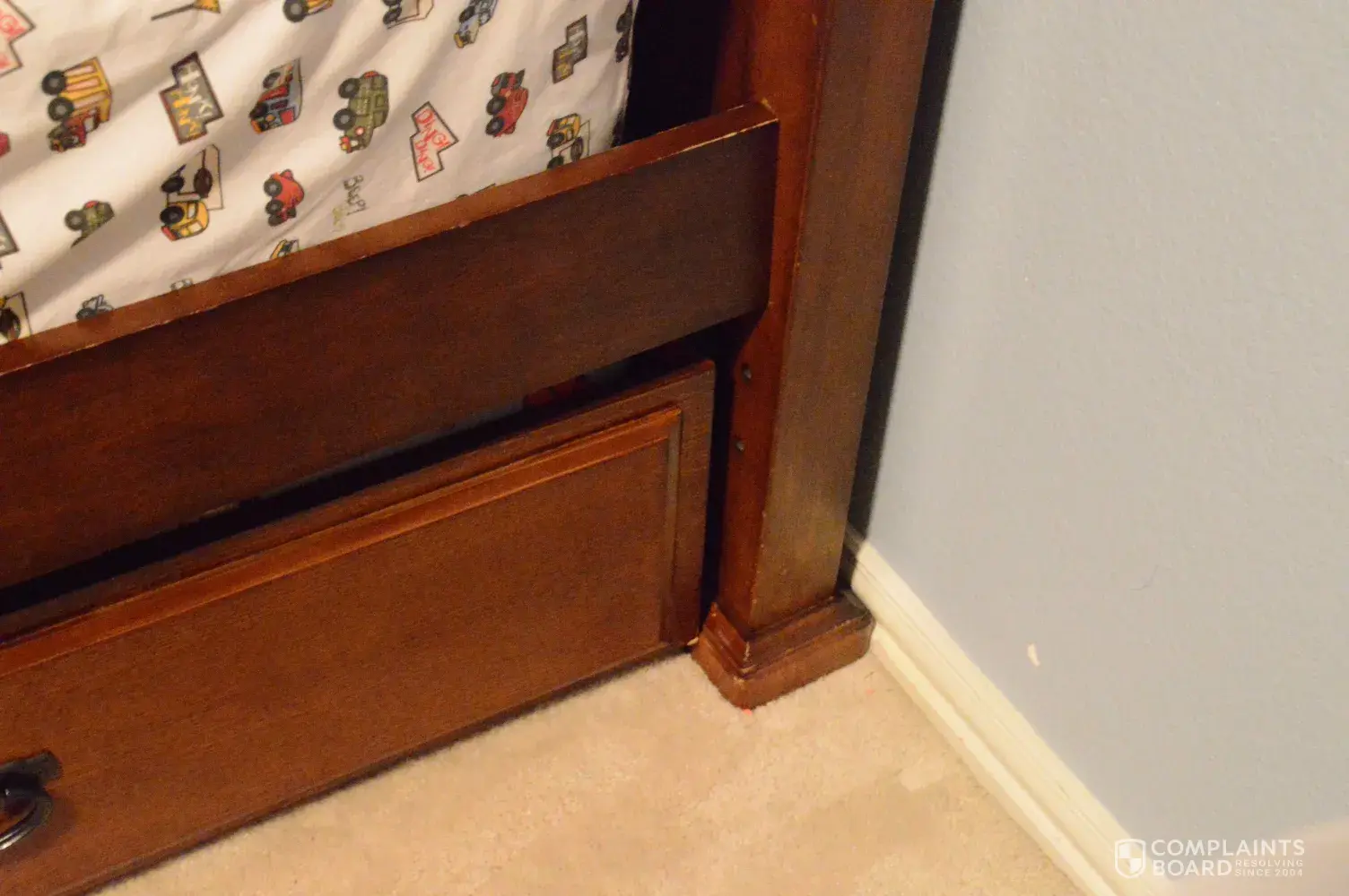 I purchased a trundle on 8/29/14 to go with a previous purchased Mission bunk bed that was being handed down to my youngest son. The purchase was made via the website since I knew what I wanted and didn’t need to go to the store. (I actually ended up revising the order via a phone call to RTG to change the color of the bedside table and add a desk for one of my other son's room.) The original Order # is 5094929i and can also be found under the phone number [protected]. The trundle and other items were delivered on 9/12 /14. The delivery men put the furniture together and put the trundle under the bunk bed in my son’s room. To the noncritical eye, it all looked ok when they left my house. A few days later I tried to pull the trundle out from under the bunk bed to rescue some action figures that had fallen below the bed. The trundle couldn’t be pulled out from under the bed because the feet of the bunk bed don’t allow a wide enough opening. Apparently the delivery men pushed the trundle over the feet of the bunk bed when they delivered it but now it can’t be removed! (See Pictures) When I called Room To Go, I was told that there was a 24-hour return policy. It had been less than two weeks since the deliver…two weeks, not two months or two years! I explained the issue to the Internet Sales Representative and was told that Rooms To Go changed manufacturerers of the Mission furniture between the time I bought the bunk bed and the trundle. The representative told me that the new trundle would not fit under the existing bunk bed and acknowledged that the delivery men must have been able to get it under the bed but that it doesn’t fit. She told me that someone from Customer Service would be contacting me. About a week later, someone from Customer Service contacted me and wanted to set up an appointment to have Rooms To Go come repair the trundle. I told her what Internet Sales had said about the change in manufacturer and explained that it couldn’t really be “repaired”. She told me to call Internet Sales back. I did and Internet Sales had me call Customer Service who had me call Internet Sales… Finally Internet Sales told me that the only thing they could do was to send out someone to repair the bunk bed. (Apparently they have very set steps for resolving customer problems.) I made the appointment and a Rooms To Go rep came out about a week later. He didn’t even want to try to pull the trundle out because he was afraid he’d damage my bunk bed (feet) in doing so. He had to call his supervisor to figure out what to do and then took lots of pictures. He said that Customer Service would call me in the next week but if they didn’t I should call them. They called a few days later and wanted to set up a time to have the trundle exchanged? Seriously!? I explained that it didn’t fit and why and told them what I really needed was to return the trundle and get a refund. I was told that I would need to call Internet Sales because I purchased it from the website. At this point, I all but begged the Customer Service rep to help me! I explained how many times I had talked to Internet Sales and that all they ever told me was “Rooms To Go has a 24-hour return policy”. She suggested I talk to a supervisor at Internet Sales (which I had done previously) and told me she couldn’t help me. I called Internet Sales, talked to a supervisor and was told that Rooms To Go has a 24-hour return policy. She said that she would contact Customer Service to get the pictures of the trundle and call me back within 24-hours. That was a week ago…10/27/14.