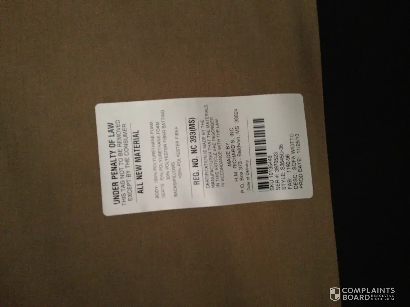 No more furnture from these people.