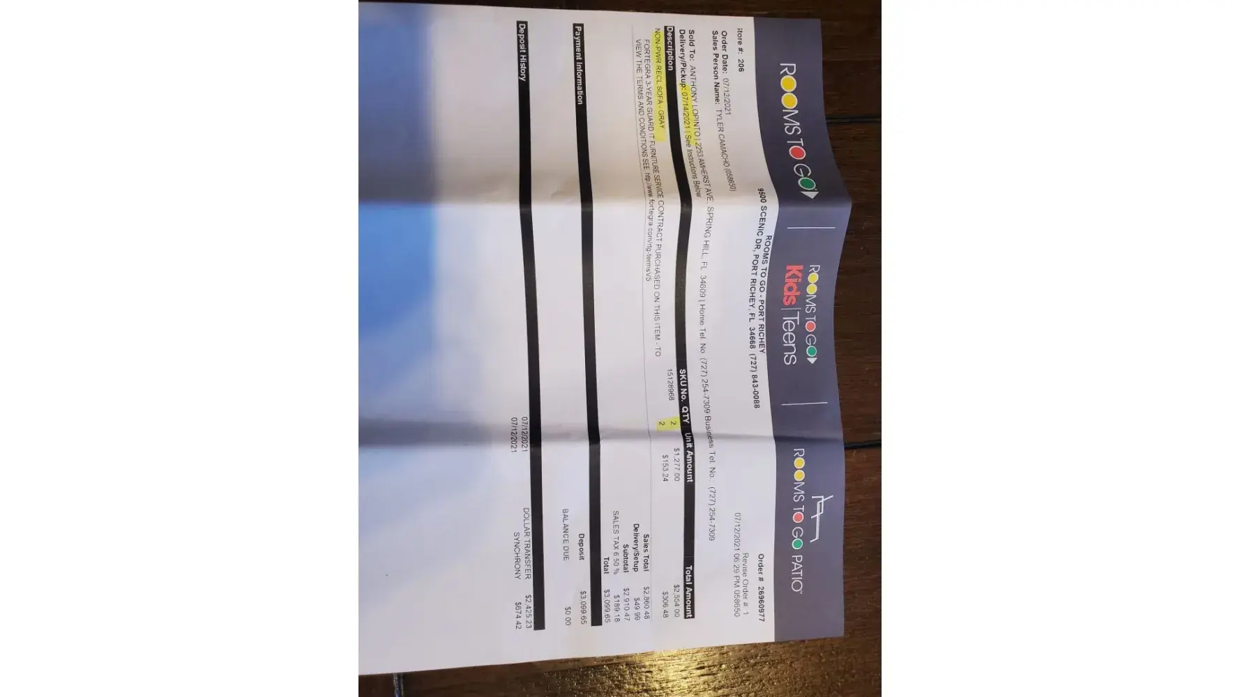 Desired outcome: I know RTG will reimburse money but my main concern was for my parents to have their sofa set.