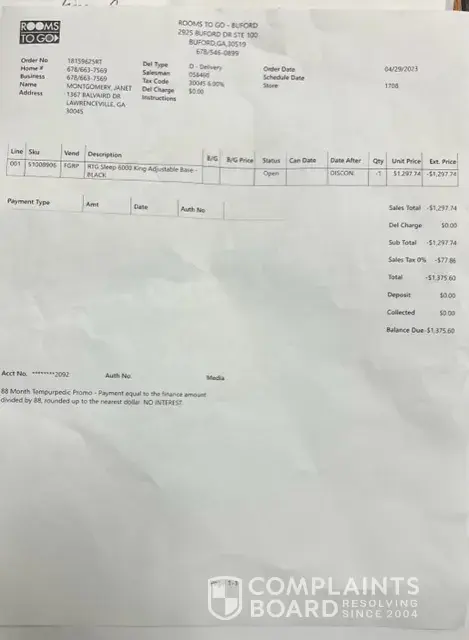 This is not at all how we would have thought Rooms to Go would handle tis matter.