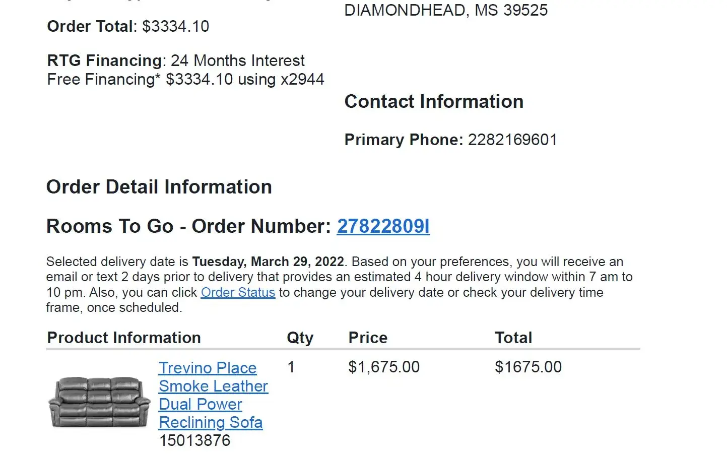 I ordered both the sofa and chair on 2/14/2022.