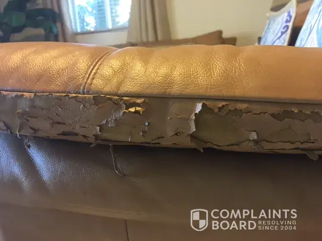 Yep the same thing happened to me. They sell it as leather but it is pleather. When I contacted them they immediately allowed me to do a reselect. I had paid off my account so a few weeks later, they closed my credit account. Baseless resasons. I think that it is time for a class action lawsuit against them.