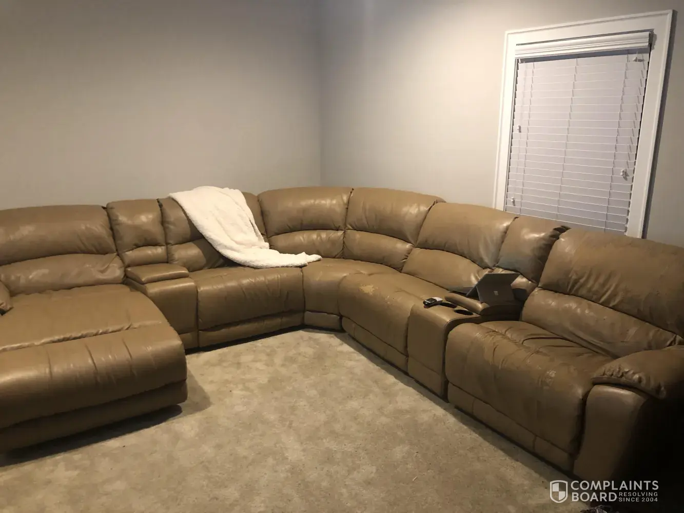 We purchased a leather sectional reclining sofa and spent $4, 000. Upon delivery, head rest had seam coming out so they replaced it. The same head rest after 8 months of use is pealing/discolored. The repairman said it should not happen and said we'd receive a new one. After no communication, we reached out to find that they denied the manufacturer warranty and said it was normal wear and tear. How can an 8 month old "leather" sofa have pealing/discoloration? The extended warranty does not cover this due to it being less than a year old. My husband spoke to the manager of the store and the manager stated that it could be hair products that caused this. Really? First of all, this is my husband's chair and he does not use products in his hair. We are finding that no one wants to assist. A leather sofa should not have these issues after 8 months of use. Customer service is not satisfactory.