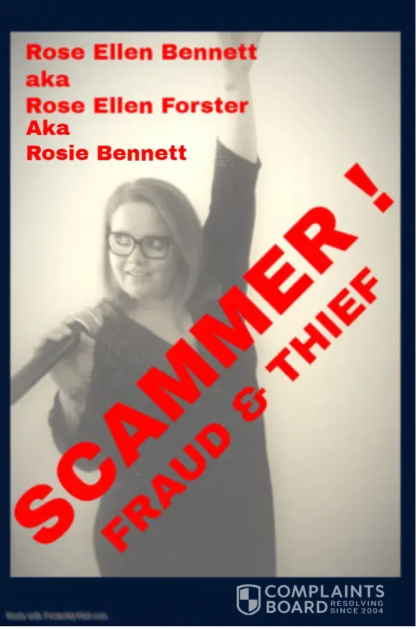 I am very publicly exposing Rose Ellen Bennett to inform and protect the public against this serial thief & fraudster. I will carry on exposing Rose Ellen's past and present crimes in order to disgrace her into returning that cash she stole from me, and I will carry on with this campaign throughout the UK and Europe until it is returned, however one point I must make here, If confronted Rose Ellen can become extremely violent hysterical and uncontrollable, please bare this in mind when dealing with her.