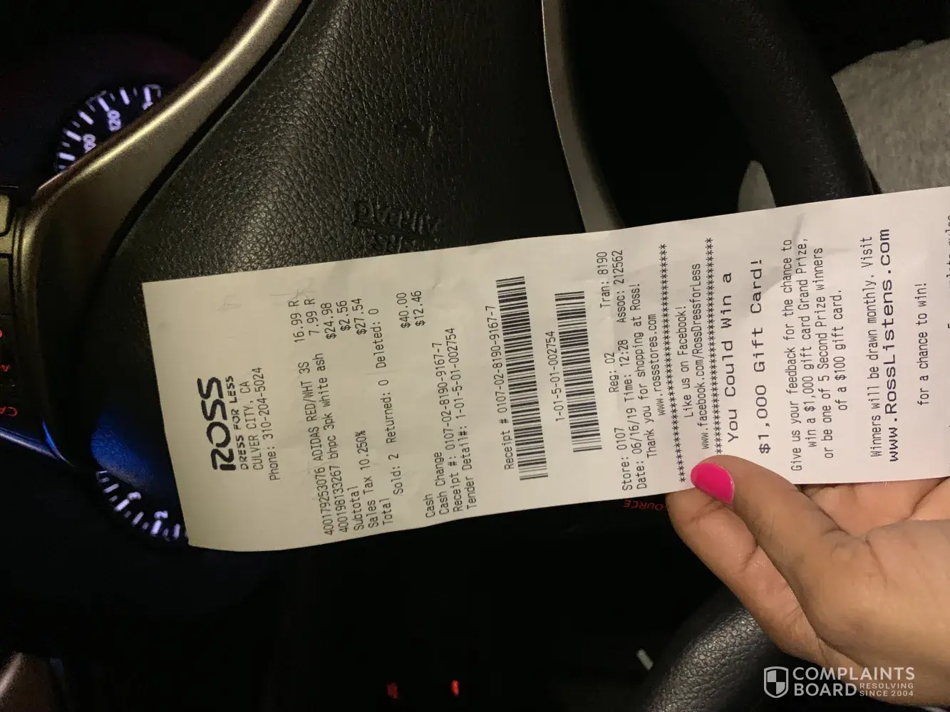 I'm honestly not a complainer and I have lots of patience. I was a bit frustrated and felt as if I was being accused of something I didnt do. I like shopping at Ross when I get the chance always a great selection but I was displeased with the service I received for returning an item. It was a pair of pants I wanted to return because they didn't fit how I...