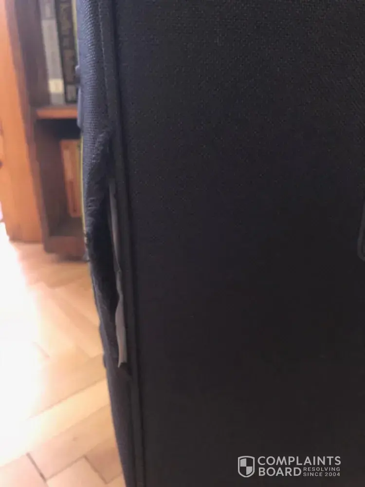 I have purchased a Samsonite brand carry on luggage from ROSS Kissimme Florida on 13 April 2018 and at my first usage the side stitches of the luggage has come off. As you can see from the photographs attached, this is a production fault.