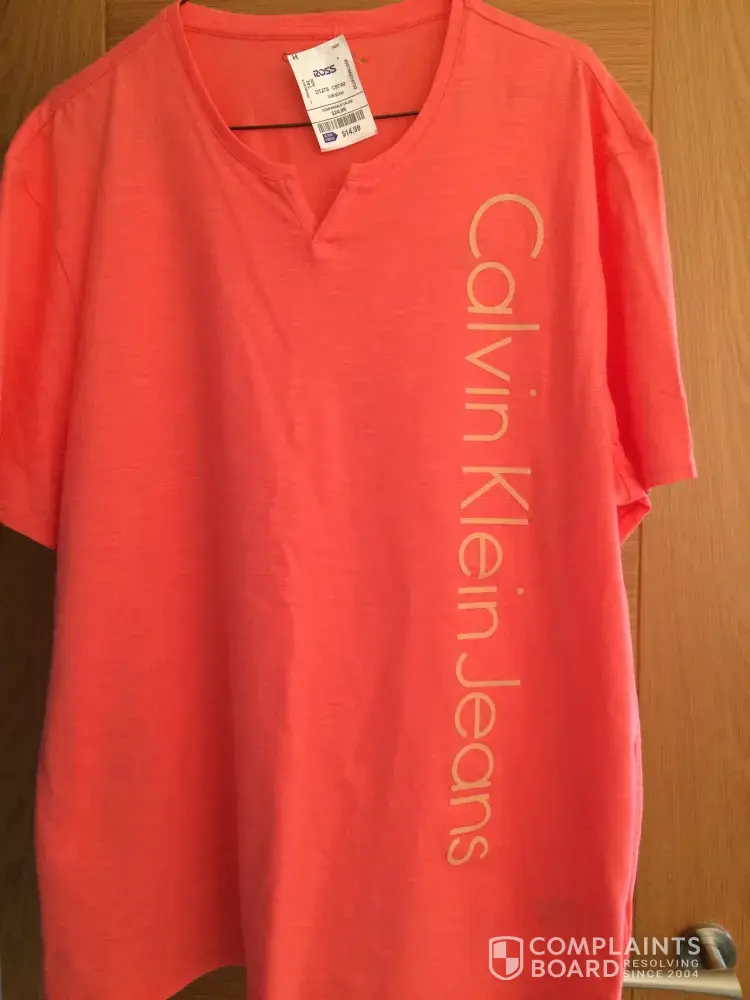 I emailed a complaint a couple of weeks ago and have received a reply. On vacation recently in Florida I purchased a men's t-shirt. On arriving back in the United Kingdom I discovered the t-shirt has a fairly large hole at the back of the neck. I assume this may have been made by a security tag. I unable to return the item as I do not live in the US and am very disappointed with this purchase.