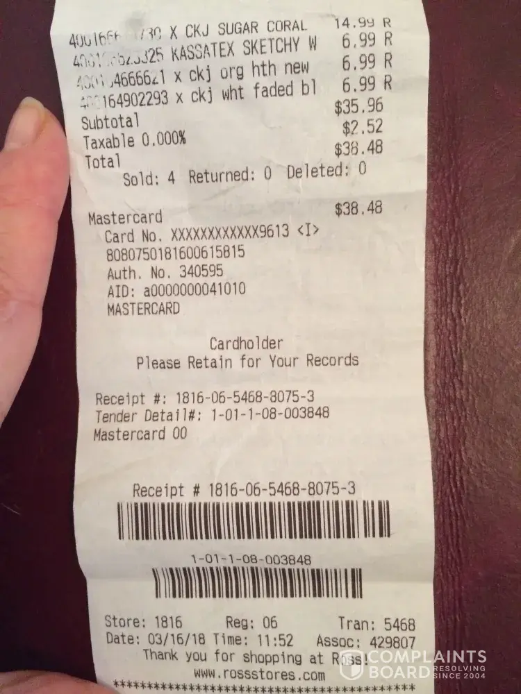 Ross is not saving money by these business practices. Ross is losing business and loyal faithful customers who have spent a lifetime of money on Ross.