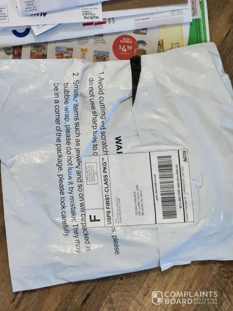 I received an open packet from Jane, 371 Little falls rd Ste 4, Cedar Grove, NJ 07009 via USPS, which I suspect is for the ordered dress.