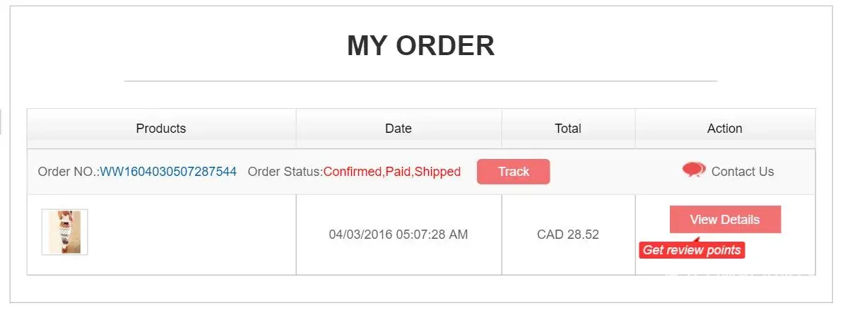 I placed my order on March 30, 2016. (Order WW1603301924208255). Payment was immediately withdrawn from my account on the same day. I did not receive a tracking number until April 26 after submitting a ticket on the whereabouts of my order. It's been over a month and I've yet to receive anything and no response back from the company when emailed.