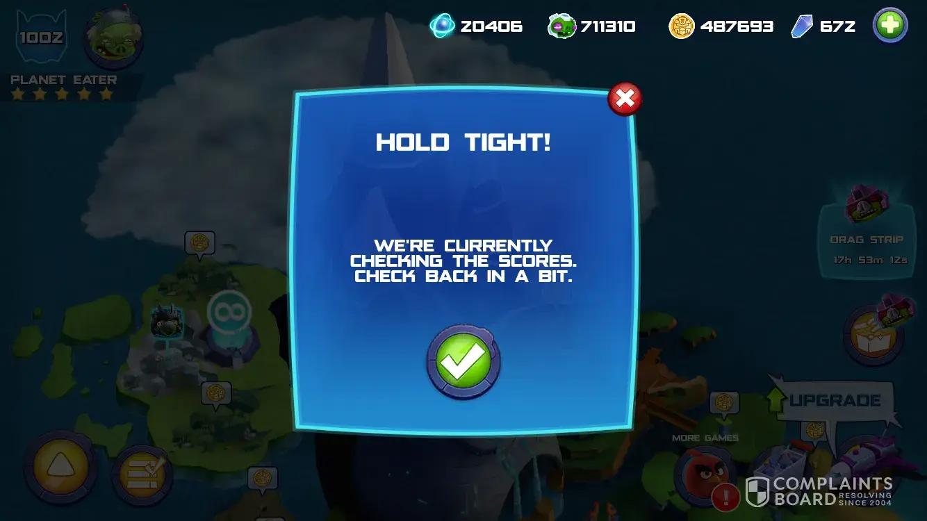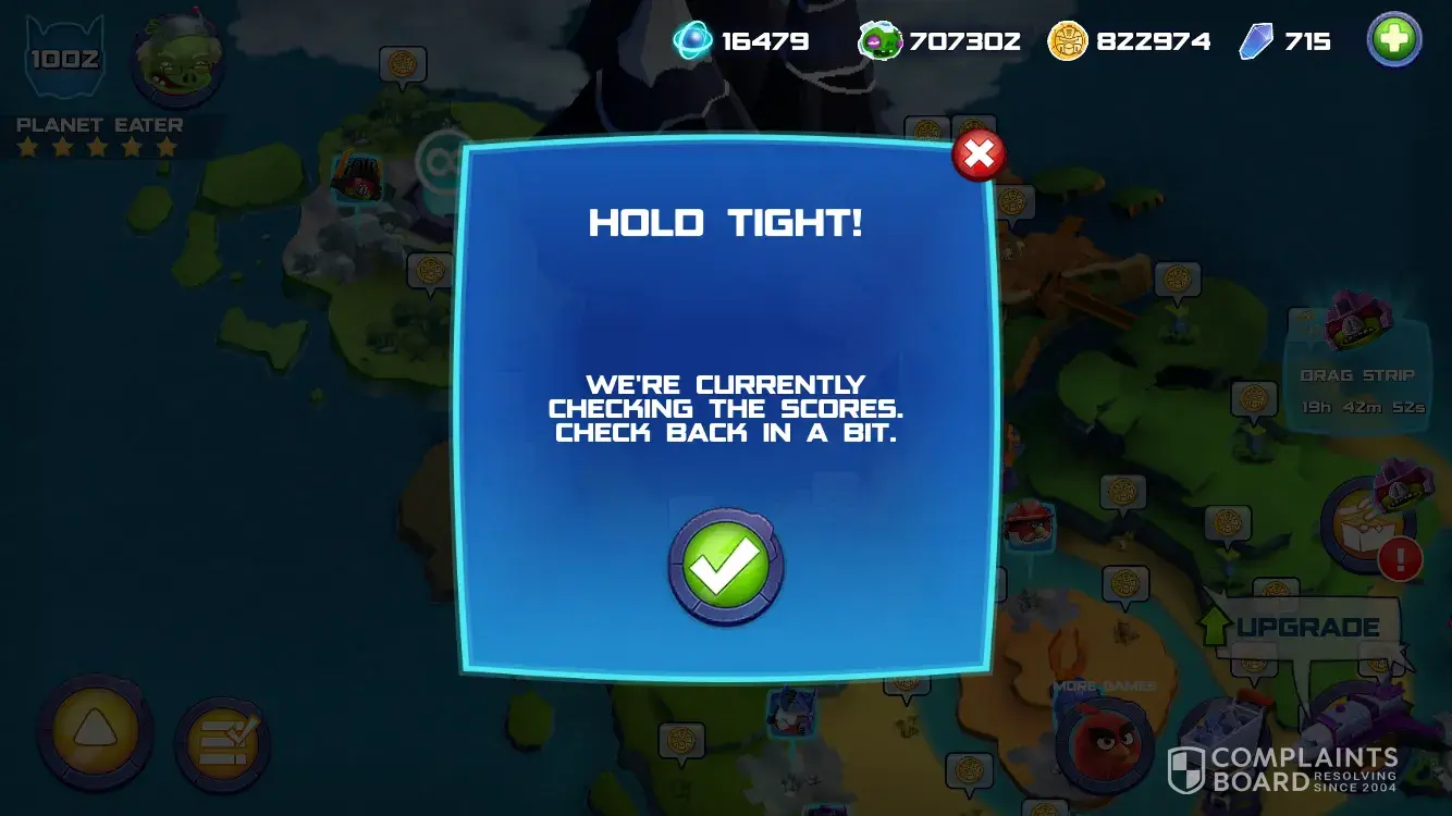 I purchased the devastator challenge run for 2500 gems and used approximately 1500 gems to obtain prizes. The game has been completed and malfunctioning for over 43 hours. There is no resolution for the game prizes we paid for and we earned. The devastator challenge run game is fraudulent and Rovio has horrible game play customer service. We want gem compensation!