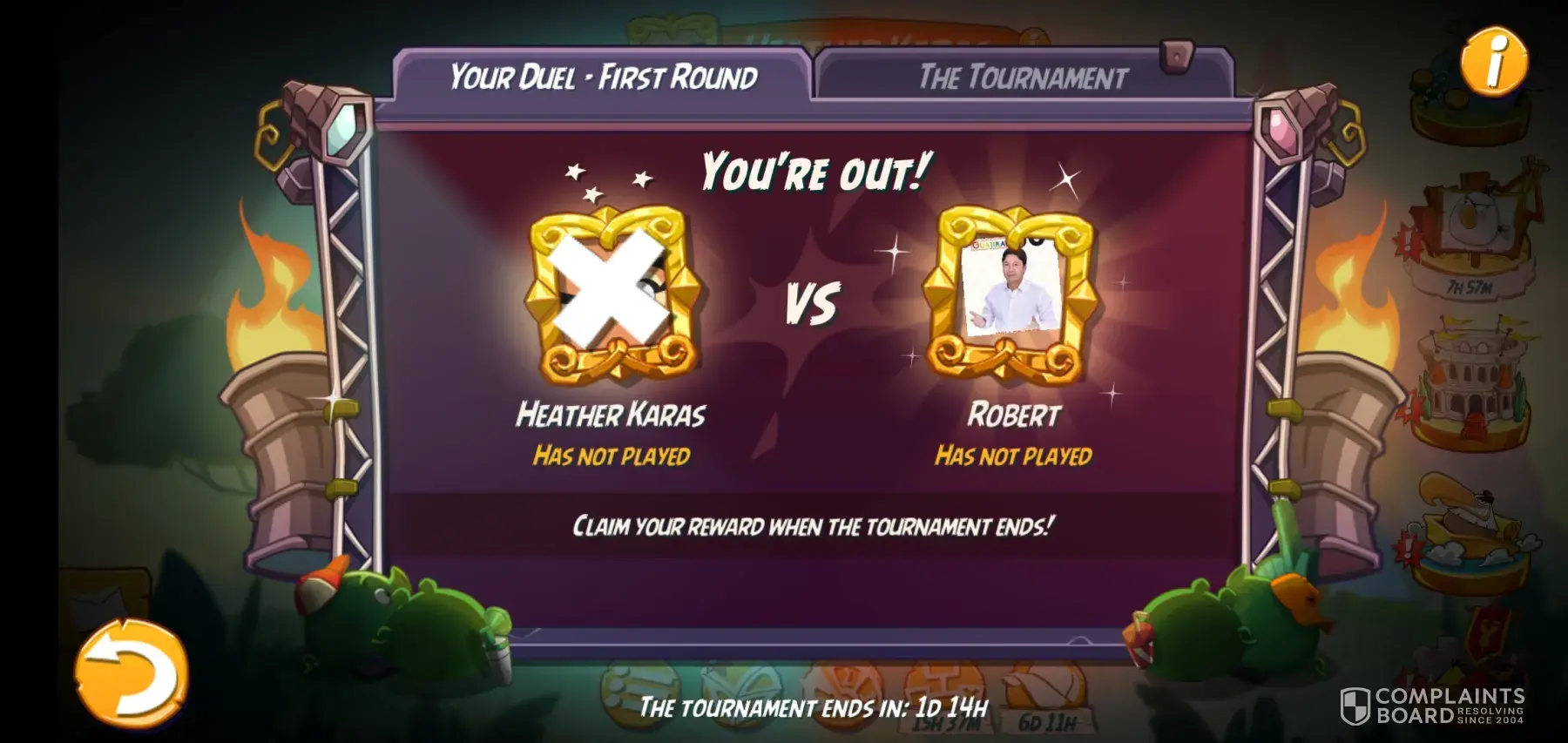 I never even got to to play in the tournament! And it said that I was out? I dont get it. It's not fair that I couldnt play. Aslo it says I'm not part of a clan when I'm the leader of a clan.