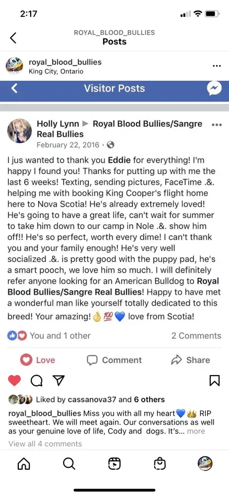 Hello and thanks for your review. Trying to low ball someone who is already already rehomeing the dog is very low and then coming out here to leave a review just makes u look salty. I was right not to give him to you as you seemed really shady and yes I told you someone else wanted him because u did not seem like the right fit for him. You were to aggressive and gave out horrible vibes. I don’t use a front for anything and every dog I have rehomed I have worked with and have put on a routine. Hundreds of great reviews.