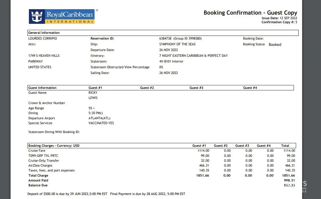 Booking number [protected] to 12-18-2022 Wonder of the Seas.