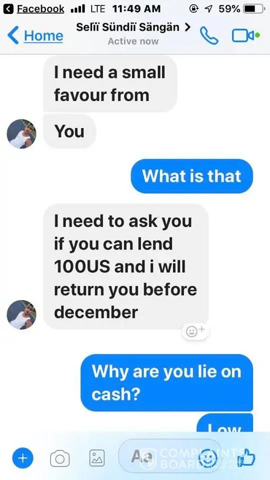 You have an employee by the name of Selii Sundii Sangan, who, exchanged his personal contact and social media information with a friend of mine. He then, post cruise, contacted my friend on more than one occasion asking for money. I find this behavior to be highly inappropriate and unacceptable. I told my friend at the time, this employee only wants to tap you for money. He did not believe me at the time, and was shocked the 2 times it has happened. I can provide you with a copy of the FB text that validates the activity took place.