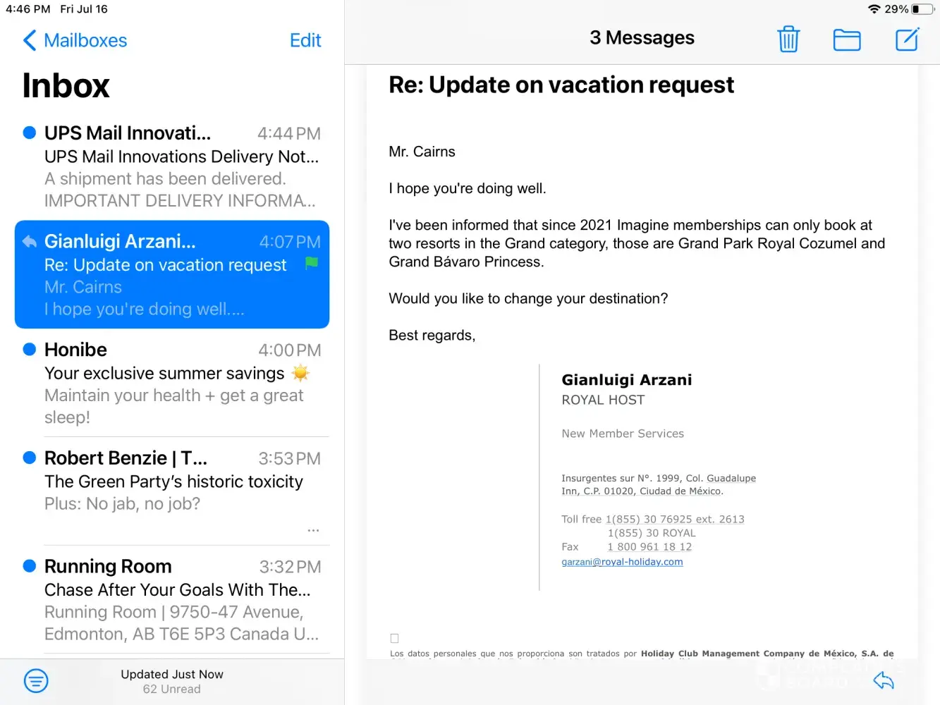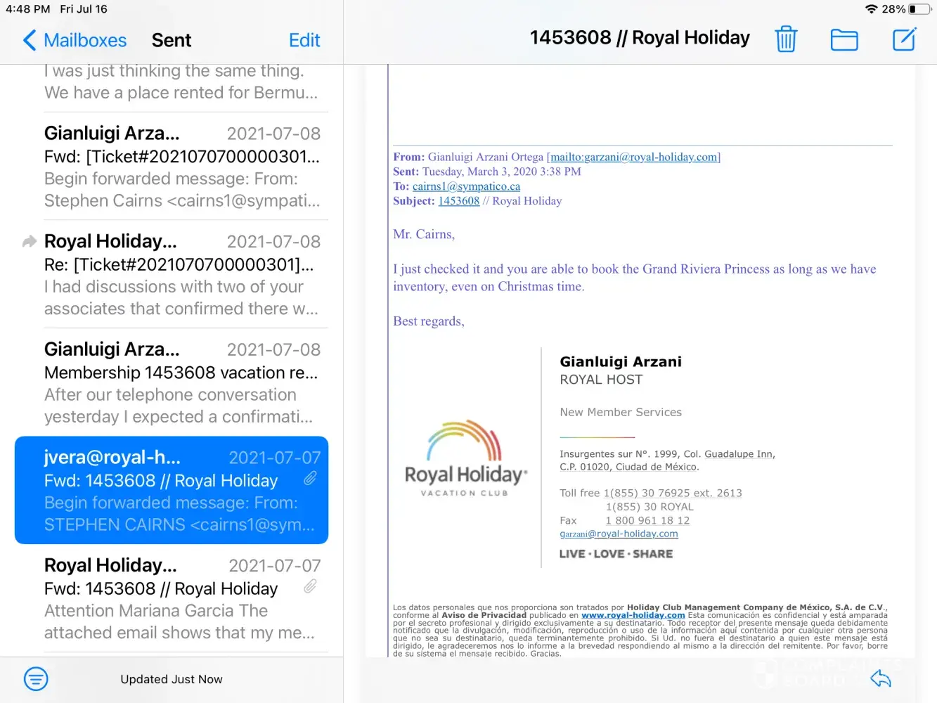 After getting the Yamasu letters returned, he made many more phone calls to Royal Holiday Headquarters in Mexico City, and was instructed to send the request for the annuity funds to Granthix using their email address, [protected]@granthix.com.