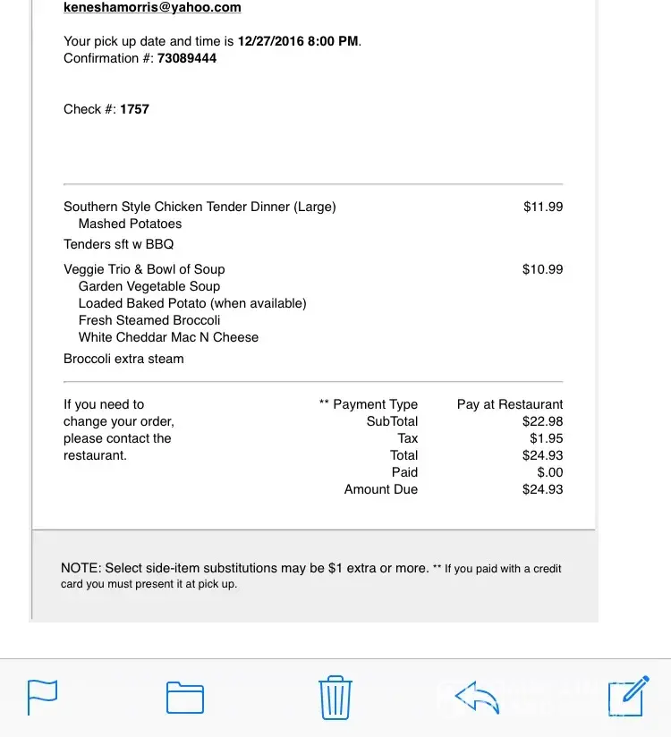 Placed online order from mobile website. Clicked 'rib eye' under steaks, but it sent me to 'new york strip'. Problem is I did not know this happened. I just went through continuing to place my order because I was under the impression that I was placing an order for a rib eye, not a new york strip. So of course I was surprised when I went to restaurant and the order was for a ny strip. I double checked the email confirmation I had received, and lo and behold, it was for a damn ny strip. I know this isn't a big deal, and maybe I am at fault for not triple checking, but shouldn't I be getting the item I know I distinctly clicked on?