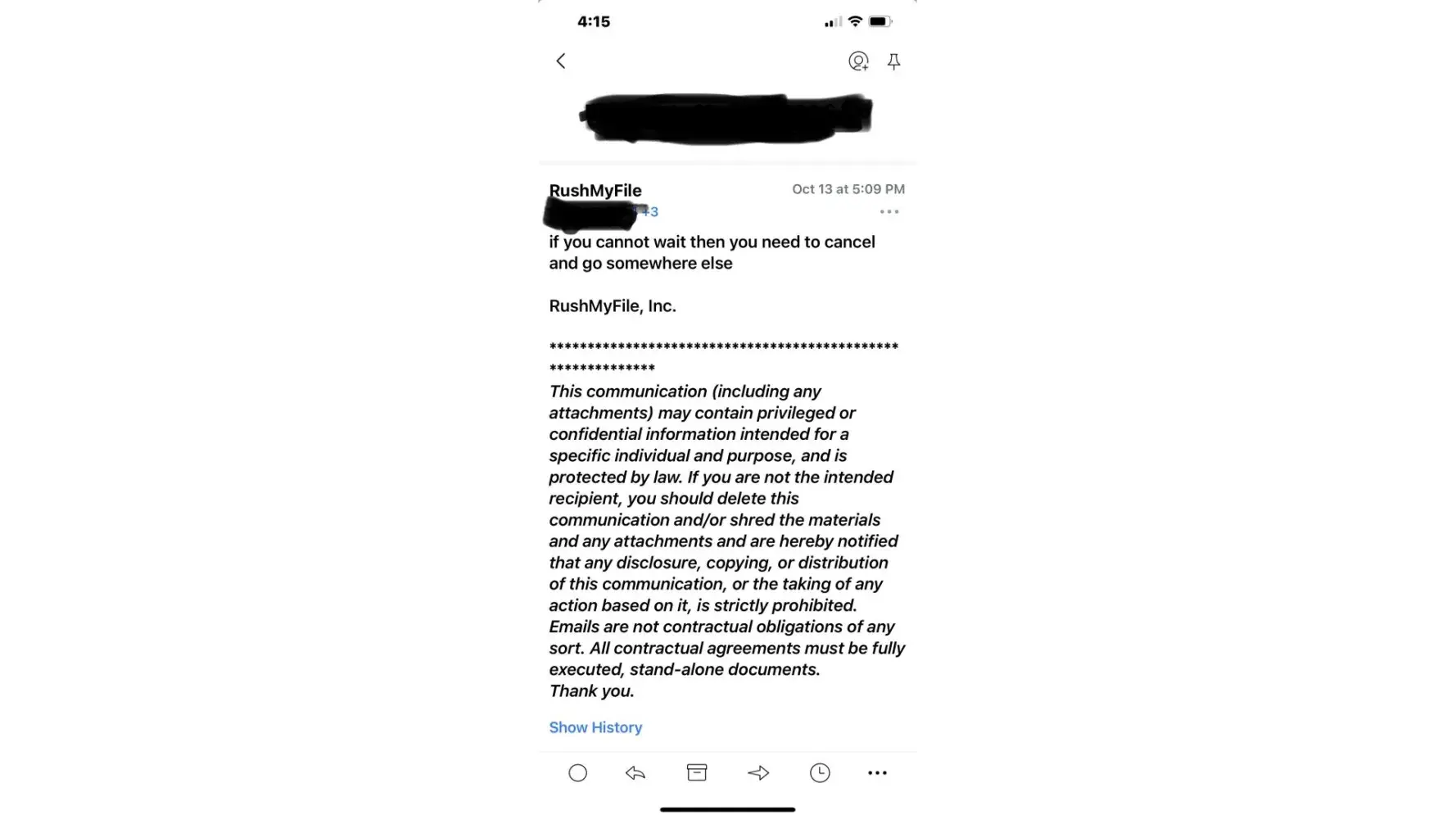 Rushmyfile has a policy of never charging upfront fees. Rushmyfile believes that you must only do work on files that you believe can close, not work on everything you get a fee for. Thus, Rushmyfile does not charge upfront fees.