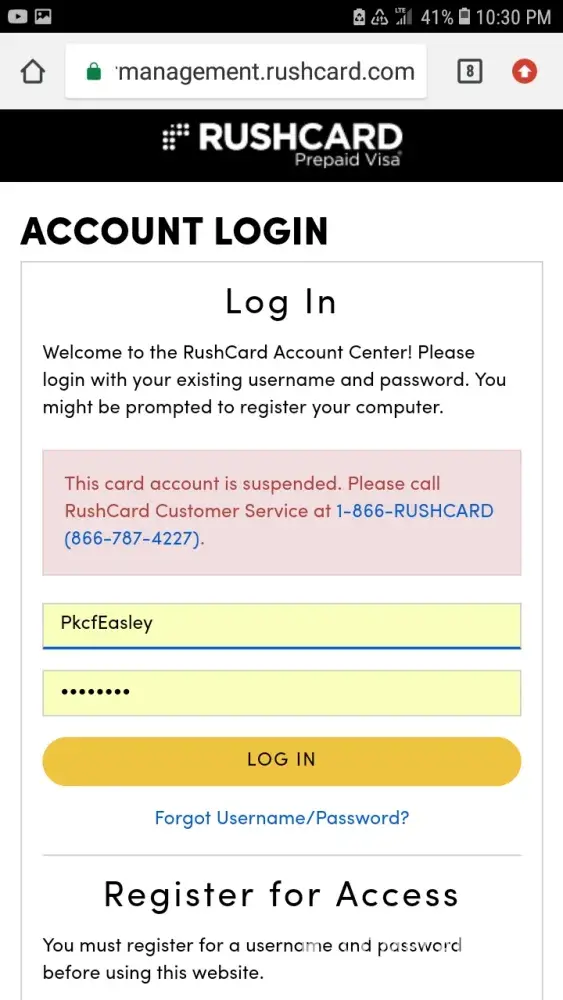 RushCard / UniRush online account