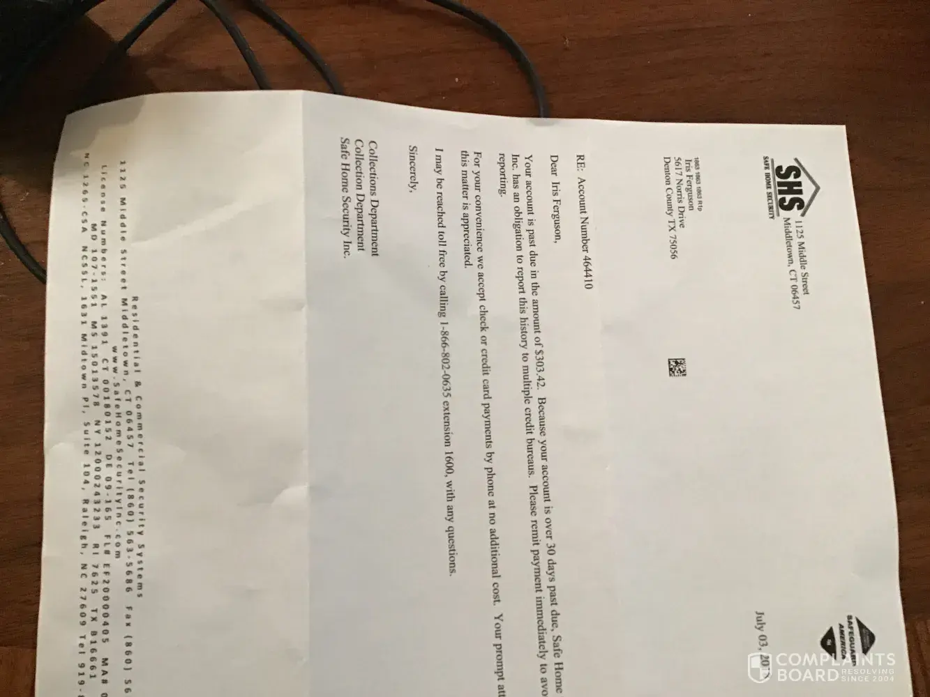 I am complain about my security system