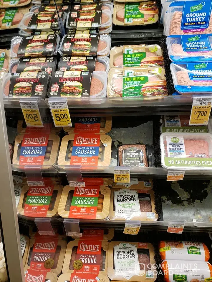I do Political work for agriculture, I am disappointed in the placement of "Fake Meat" products in the "Fresh Meat " cooler let alone there is a USDA Choice sign right above it.