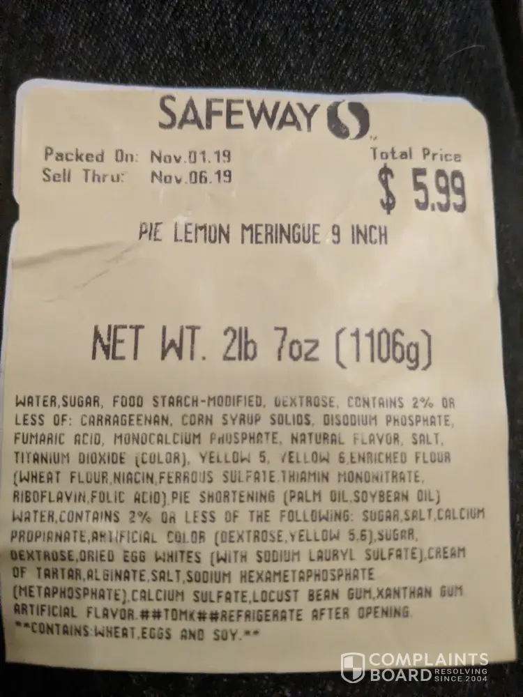One taste of the lemon meringue pie from Safeway's bakery and I was reading the ingredients list.
