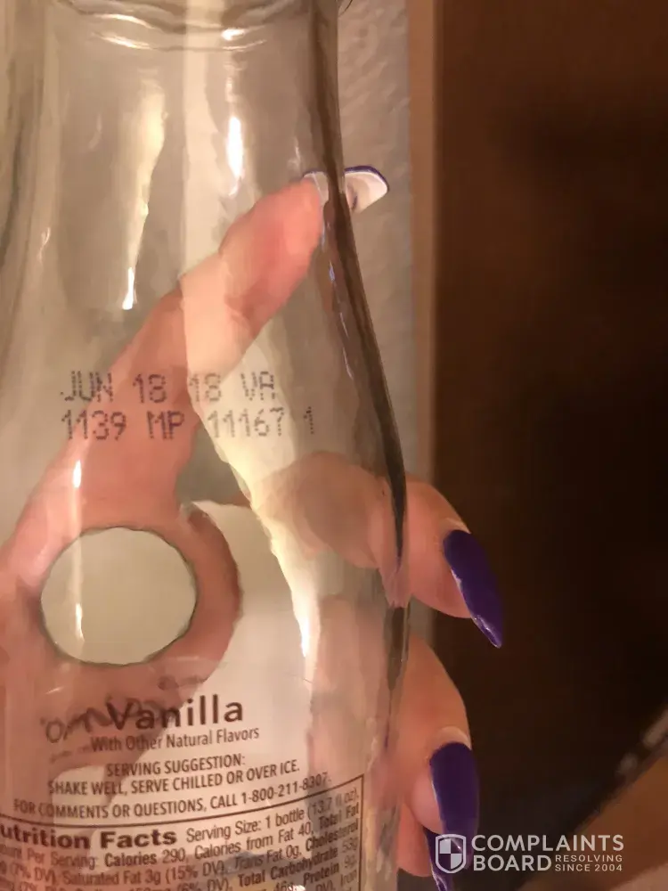I purchased this item (along with many other items) on Wednesday July 18 2018. Today July 23 2018 I opened it and began to drink it. I noticed it tasted kind of strange. So after ingesting about half I decided to look at the date. The date on the bottle is June 18 2018. So I was drinking an item that was past the date and should have not been on the shelf to sell anymore. I am outraged.