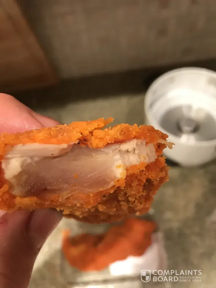 I bought a spicy fried chicken from the cold ready to eat area and when I took a bite after heating it in the microwave, the chicken was raw. I took pictures, it was disgusting. I am very unimpressed by the product and it is very unsafe to serve raw chicken. I hope that drastic measures will be taken to fix what happened and make sure this doesn't happen to a children or someone that wouldn't notice.