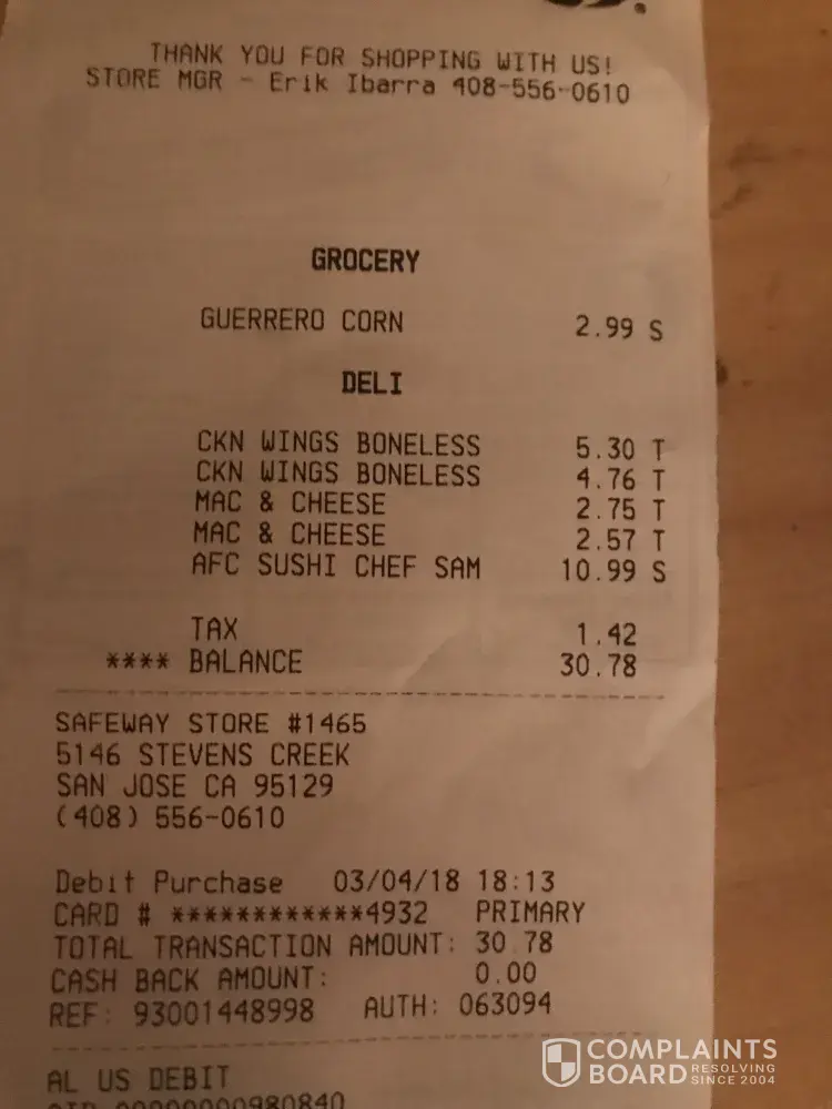 So I'm wondering if this security guard represents Safeway's view toward the millions of women that spend their money in your stores and if you've taken steps to train your male staff members on how to best serve and protect your female customers. Because the #metoo movement is looking for a business to boycott and I'd be happy to recommend yours.