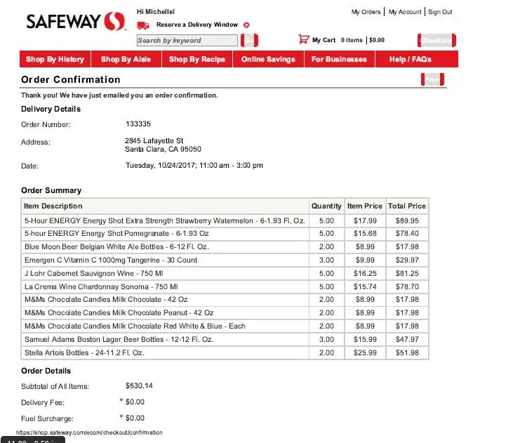 Originally I authorized to charge my credit card for $530.14 w/ no item substitutions.