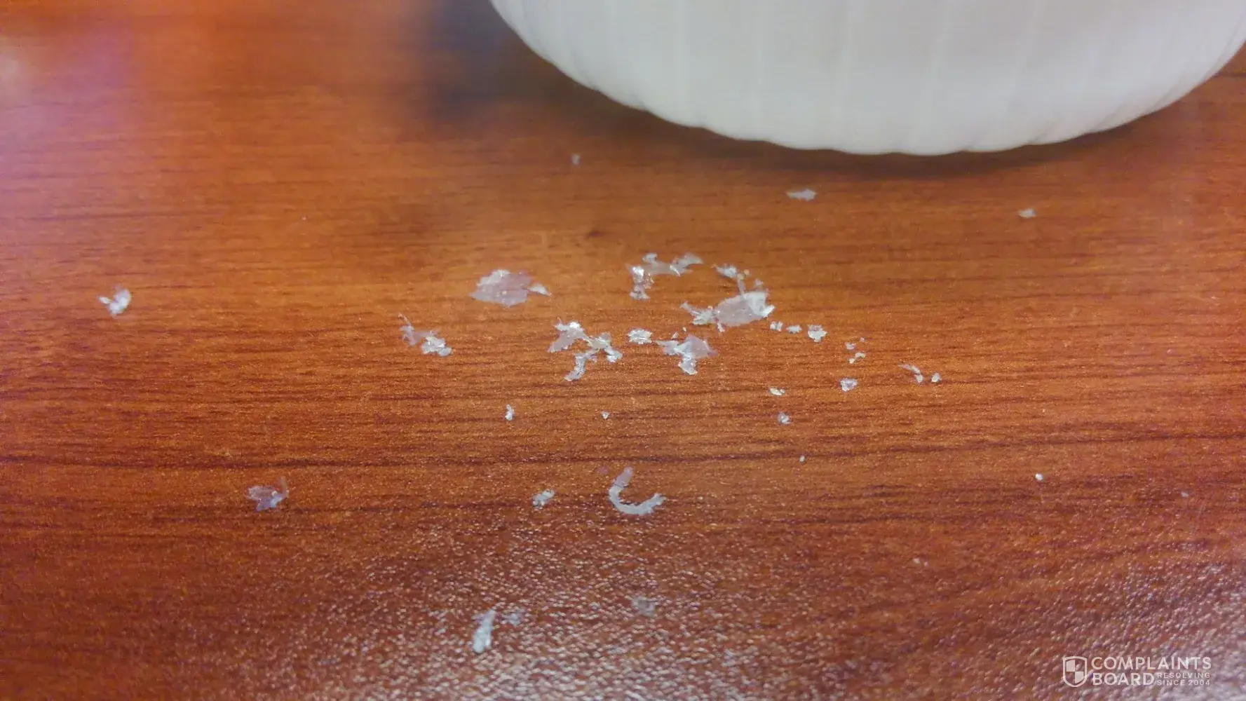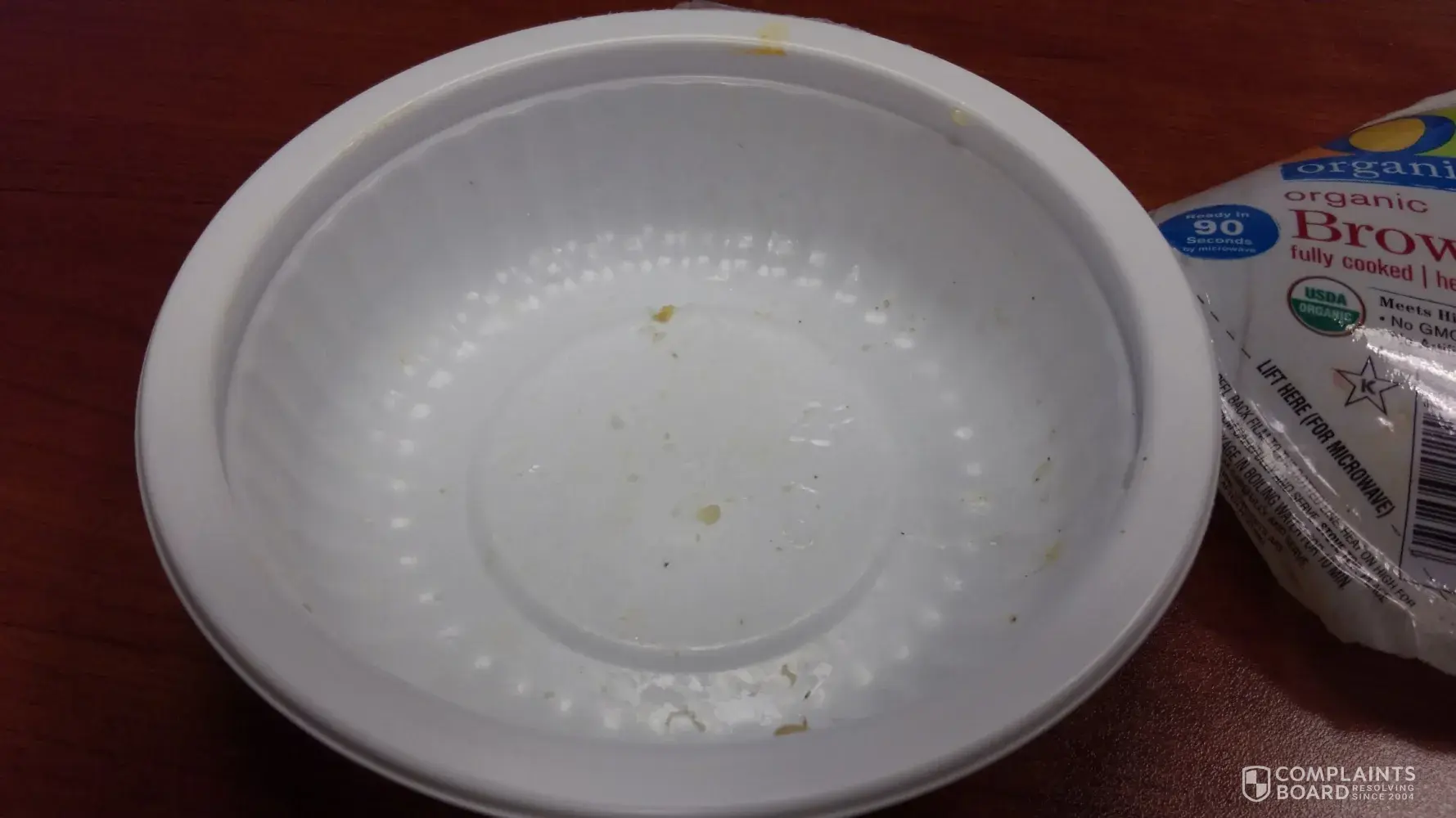 Label printed on side of bowl reads, "Best Before Aug [protected]:38C". The label on the bowl said it was a fully cooked product. Thus, working late, I didn't bother to microwave it. When I got to the bottom of the bowl, I saw flakes of what appeared to be plastic in the bottom. Thinking they might have been from the adhesive holding the lid closed, I looked closer. What I found was that the flakes were coming off of the inner walls of the bowl itself. I cannot say exactly what the flakes are, but managed to scrape enough off for a photo. If the rice is cooked in the bowl, the flakes could just as easily be starch as they could be plastic. In either case, I will not be eating this product again until I have a definitive answer as to what it is.