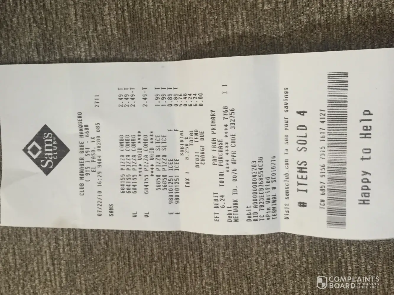 It was a terrible experience, to which I will never purchase from Sam's Club snack bars again for false advertisement.