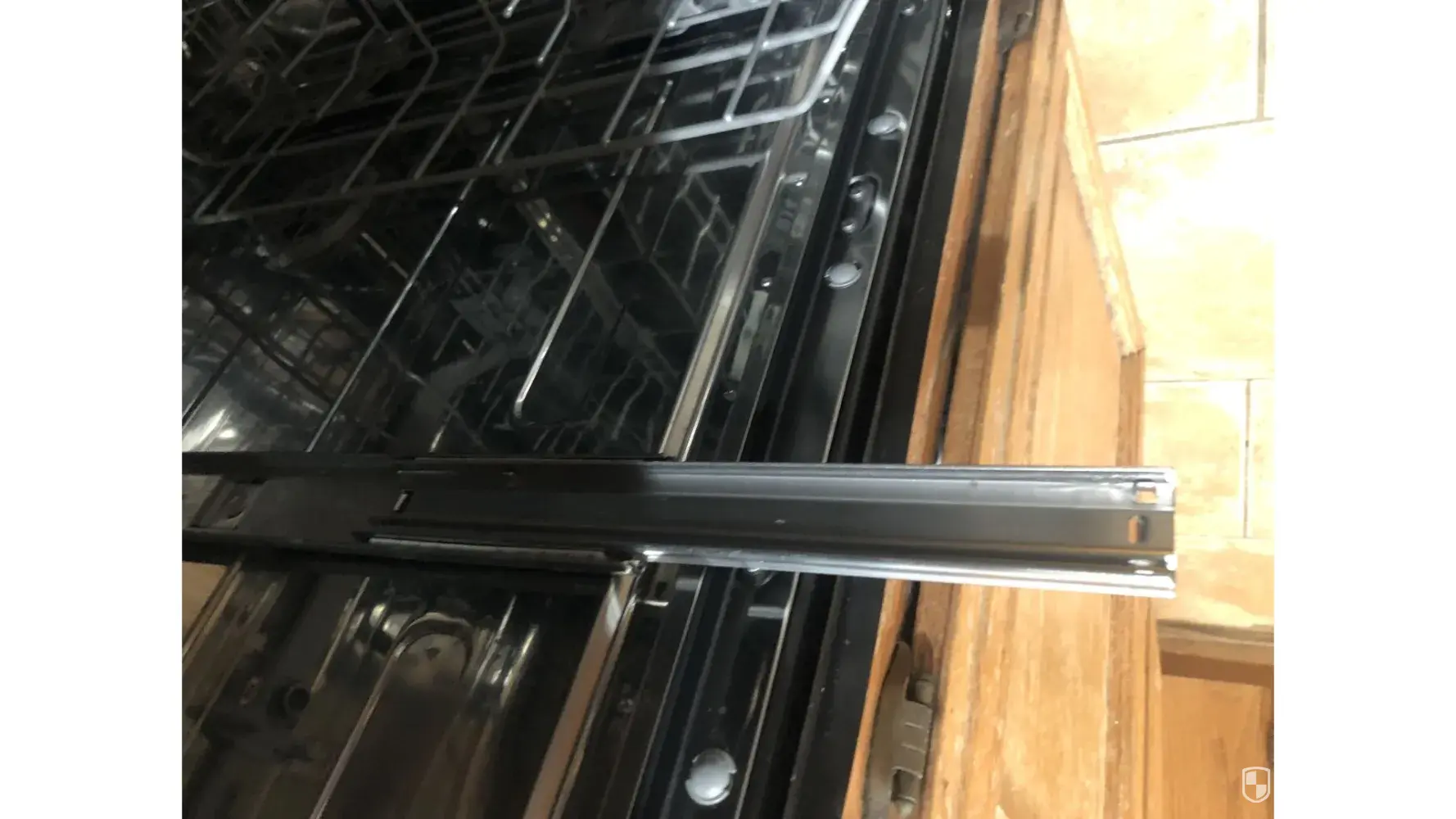 Desired outcome: Repair the slide on the side so that the dishwasher works like it is supposed to.
