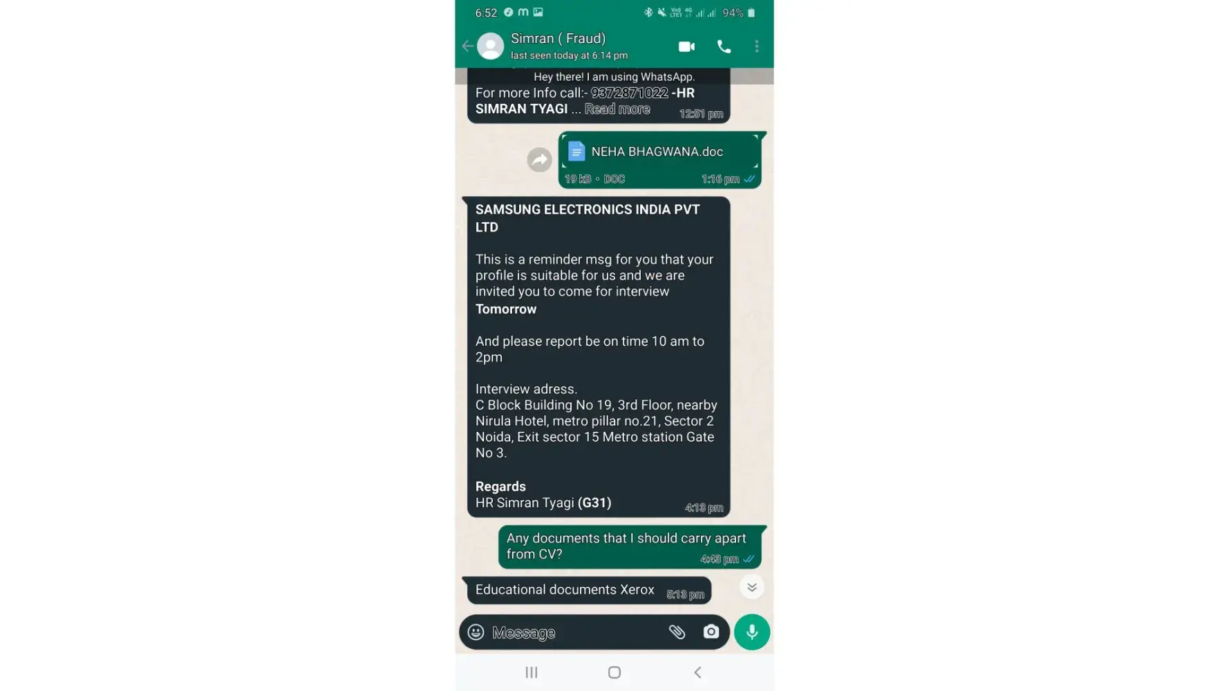 Fake job scam