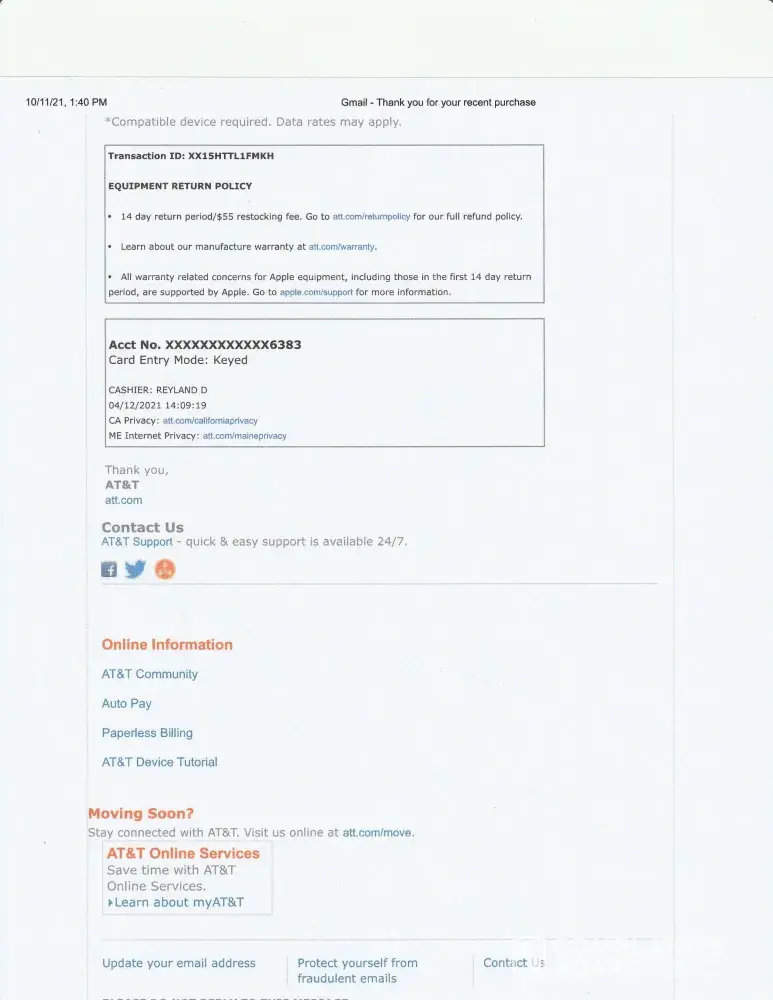 My case file number with T-Mobile is [protected]. My name is Vicki Green [protected]. I sent my Samsung Galaxy Notebook20 Ultra to be unlocked because the phone was not accepting the unlock code in the AT&T store or the T-Mobile store. I used the bar code you gave me to ship the phone in October 2021. I received a call from you stating the phone is fixed. I pray they mean unlocked. Anyway, you wanted a receipt with the IMEI number printed on it. I called Ms. Christina Castro with the AT&T Office Of the President who stated they do not put the IMEI number on the receipt due to infringement issues. She asked me if Samsung would accept a letter from the AT&T Office of the President stating this along with the receipt showing the phone has been paid for in full. I spoke with Emerita badge number [protected] in Tech support who informed me that I would need the Proof of Activation with the IMEI number. She told me that I would have to call back despite the long hold times and text a screenshot to whoever service my call so I can get my phone back. I spoke with Ms. Castro with AT&T who said she would see if she could get the proof of activation with the IMEI number. She wasn't sure because she was NEVER asked to do this before.