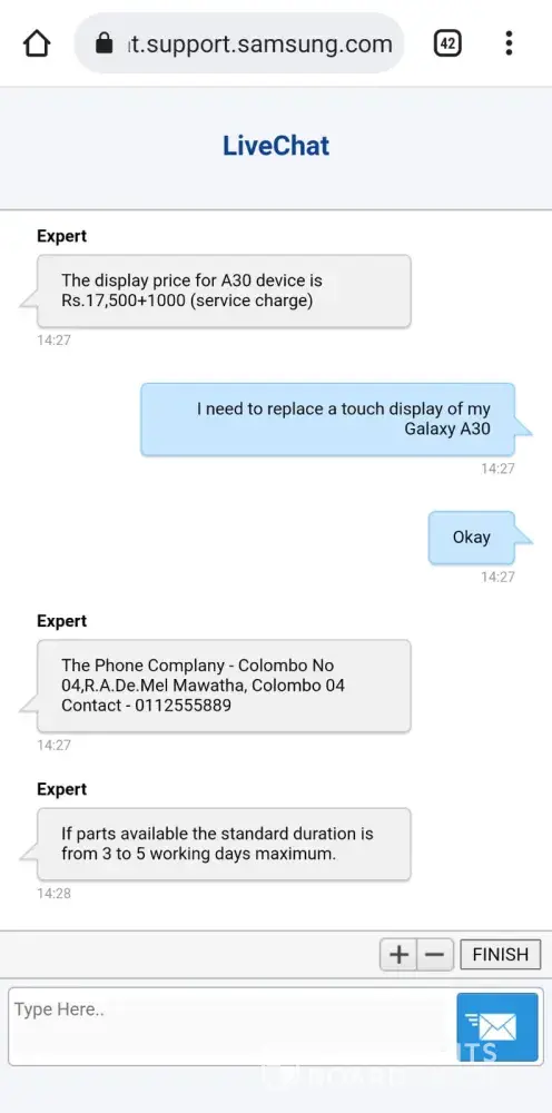 Before I handed over I got verified at the service location, the delivery times, and the parts availability.. With that only I handed over, If they confirmed that, they don't have required parts, I would have gone to the next service centre which is almost closer to this.. at the same road. (Softlogic Samsung Mobile Service Center, No. 518, R A De Mel Mawatha, Colombo 03.)