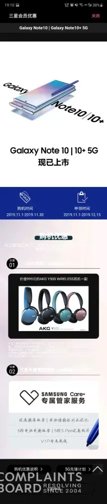 1. I bought a Samsung galaxy Z Fold 2, and in the app (called Samsung assistant)sales promotion, I can apply for a galaxy watch 3 LTE edition as gift. I applied the gift and type my receiving address in the app (on Jan.15 or 16), and did further confirm after 7 working days (on Jan. 26) from the first application date following the rules shown in the app without any caution or warning to me. According to the rules, the watch will be sent to me within 7 working days. However, I didn't get any update since then. On Feb. 2, I made call to samsung for the first time, and get the answer I am not qualified because I bought the phone online. There is no related rule statement on the app page (attached picture, as comparison, I also upload similar promotion page in app for note 10+, while the page of note 10+ say that this campaign is only for customer offline) and there isn't any limitation or rules statement during my whole apply process