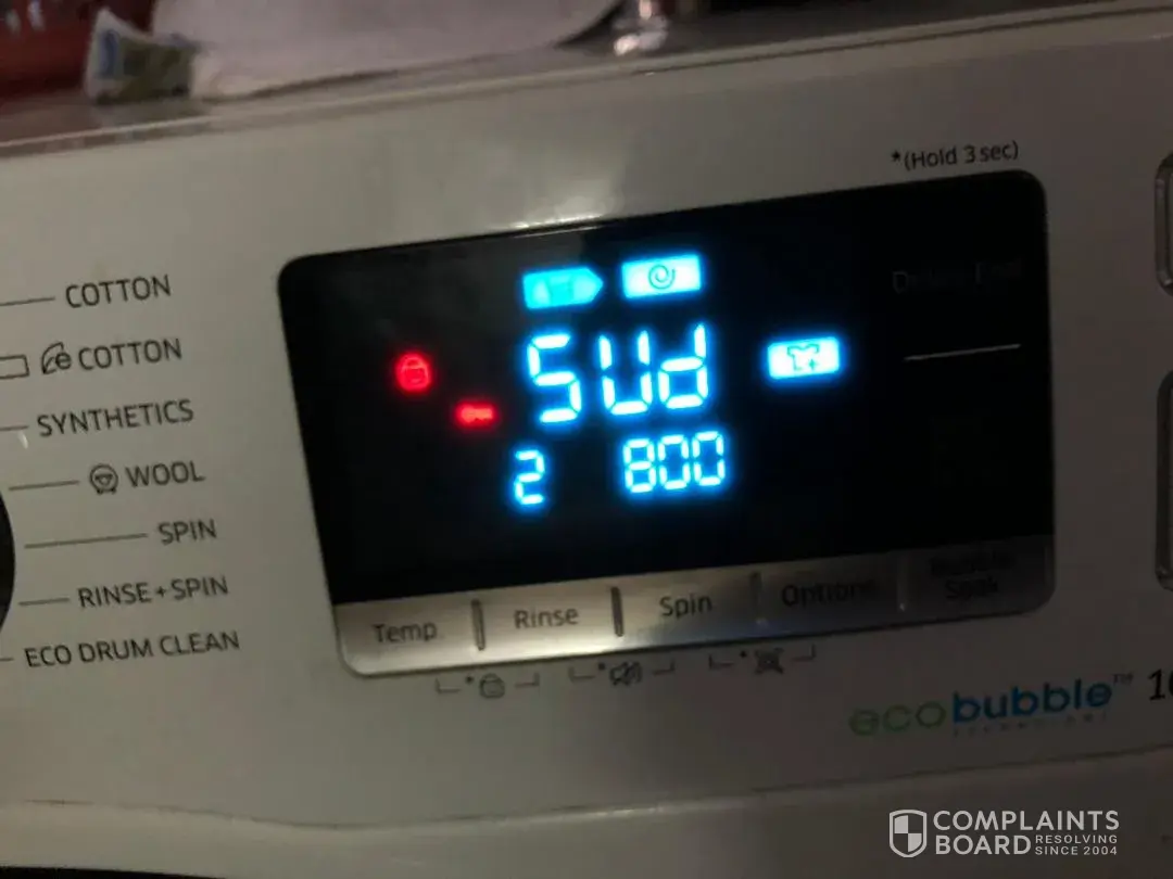 Bought the front loading washing machine in Feb 2017. We 1st encountered the problem in August 2018. The machine got stuck. All buttons not functioning and the door can't be opened. Called the svc ctr in Malaysia, followed their instruction for diagnosis and still nothing happened. they sent technician to change a chip and we were charged. Now in October the same thing intermittently occur again. Why is Samsung product so fragile? Its less than 2 years!
