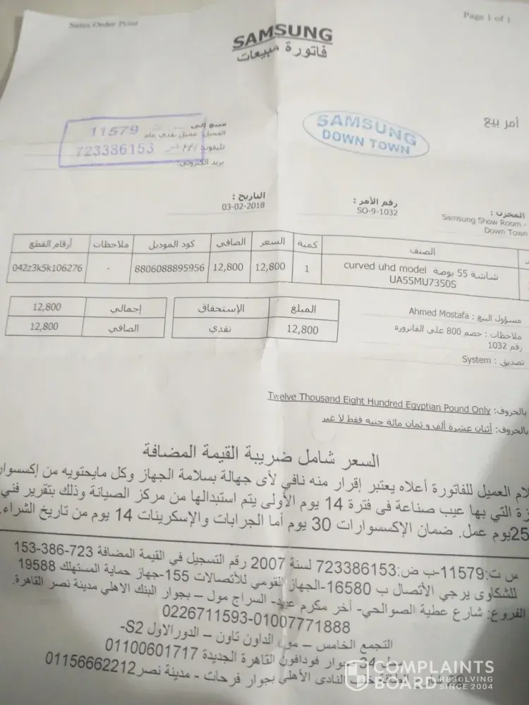 I want to tell you about a horrible experience with #samsung_egypt when my fiancé & I decided Samsung ( smart UHD 4K curved - 55 inch ) & cuz we trusted such a big name & though it would be a great experience & would be a great thing to get as a first thing to our home & what happened was the exact opposite we got the screen on the 3rd of feb from down town store & I've examined it at the store & we ship it in the car & was advised from the sales man who refused to ship the screen throw the store & insisted to ship it myself after assuring that its will rapped & assure it doesn't need any special shipping method & when I went home & took the screen from the box I found I big black spot on the left side of the screen & here it all the disaster started, i called the call center & promised me with a call back at night from a technician & that happened two days later & asked me to send him a pic of the screen while it's on & the serial number & I did & of course no reply & on the second day I got a call from the call center asking if the technician called back & advised that it's an internal crack in the screen & it's what cussing the black spot & it would cost me 11K to get it fixed as any crack out of warranty & what happed is a miss-use from me end cuz of the shipping & on the second day I went to the store with the TV & they advised that they can't help as they only a selling store & advised ether to go to the warranty warehouse or to call the call center so I want to warehouse & they refused to help & said we can't take any screen bigger that 32 inch as it can be broken & advised to call the call center to arrange a home visit or it talk to them over the phone & only advised it's a miss-use & here stared the contradiction & the call center manager that I asked to talk to advised this time that transportation should cuz any damage & when the home visit technician came to the house do you have advised that this kind of screen specially the curved one needs a special Shipping condition& technician who can assemble the screen at home And later I found out that the screen specially has a lot of problem as was mentioned in more than page on the social media and its very fragile and a lot of people complaining about the same model specially