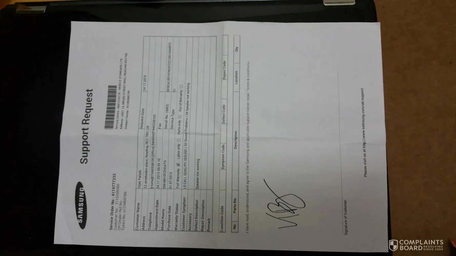 During both instant they confirmed that all testing has been done thoroughly and it should be alright. Attached is the 2 cases I had logged in Samsung Service Centre Reading.