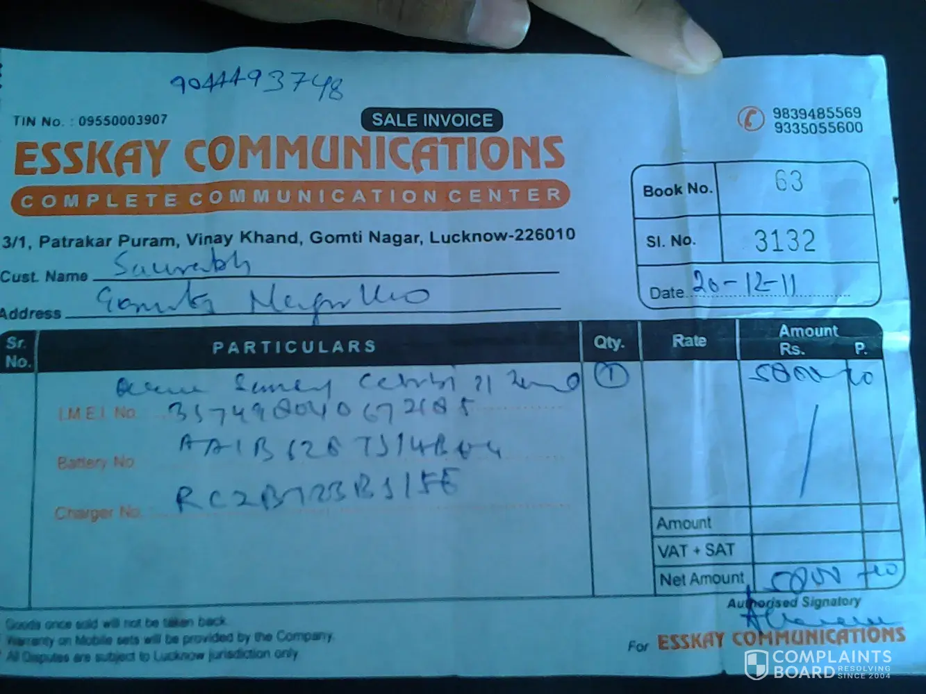IMEI No.: 354556/03/130558/7...
