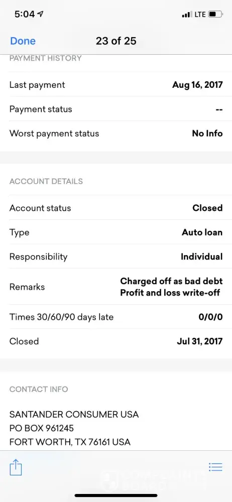 Right now Santander is saying I owe 150 dollars more than I actually owe, and they keep calling wanting their money and I keep calling tell them to explain where this 150 is coming from and they said it was taxes and interests which doesn't really make sense and usually goes on the payoff amount. They also took out a double