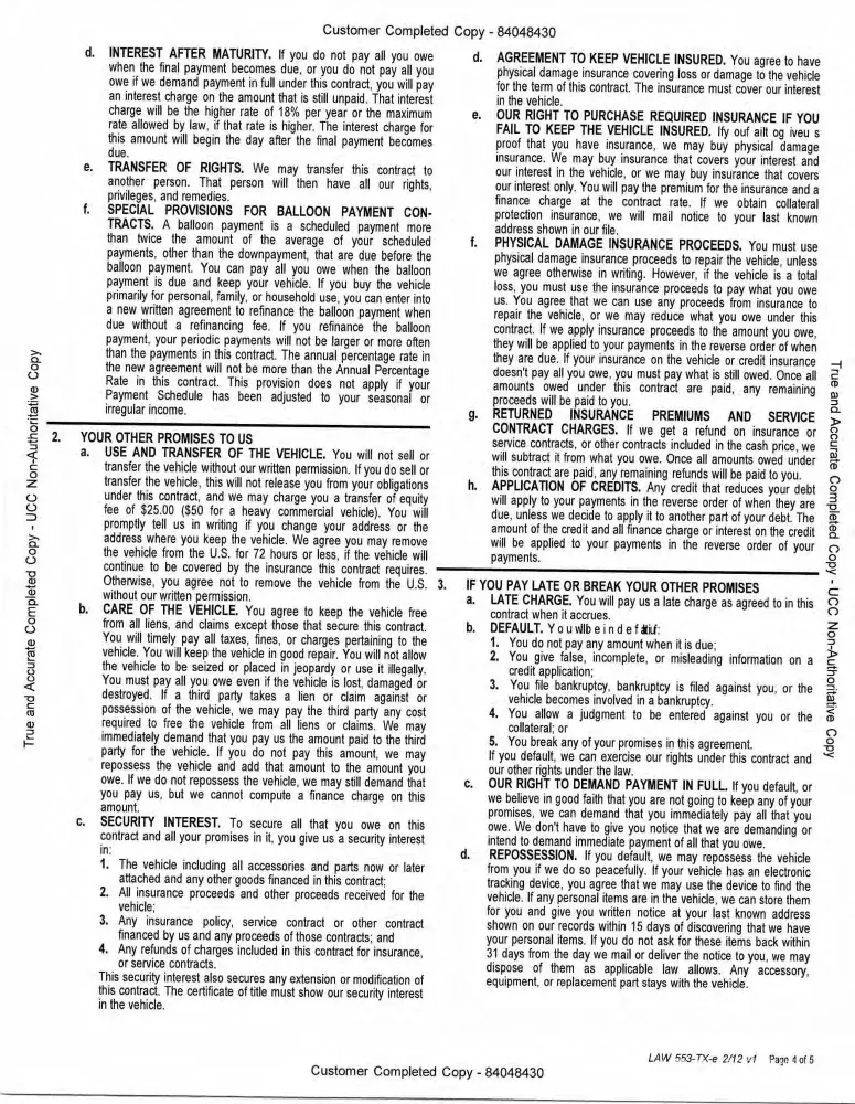 auto loan/ contract
