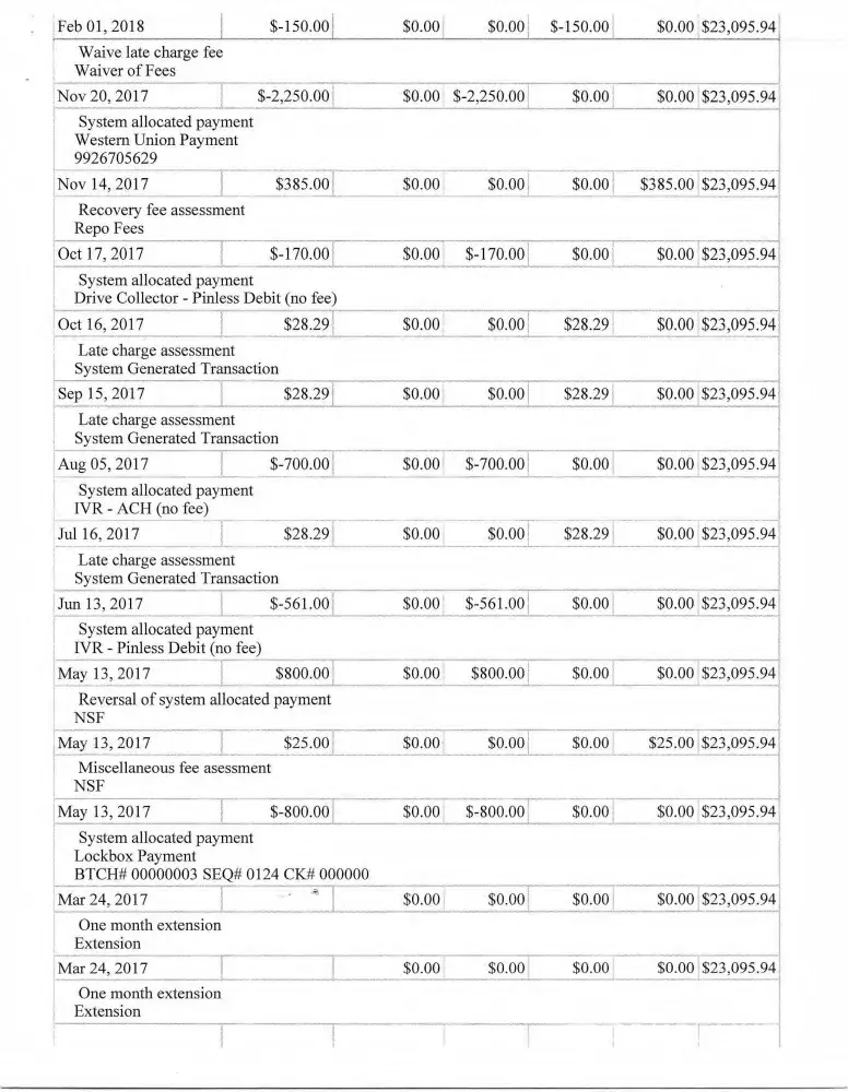 Usury and exorbitant sub-prime car loan payments and accrued interest rates of $5.00 a day from this auto financing institution that has my wife and I upside down with this car loan. The car loan is as follows, the vehicle was priced at $13, 995 and a $3000 trade in was taken by the dealer. $10, 995 was financed with an interest rate of 27.99. $16, 000 or more have been made in payments and a balance of $9093.85 dollars still remains on the loan, plus misc fees and daily accrued interest. We went through 1 repossession during the life of the loan and had to come up with the monies to get the car back which was $850. Would like to join the class action lawsuit. [protected]@gmail.com