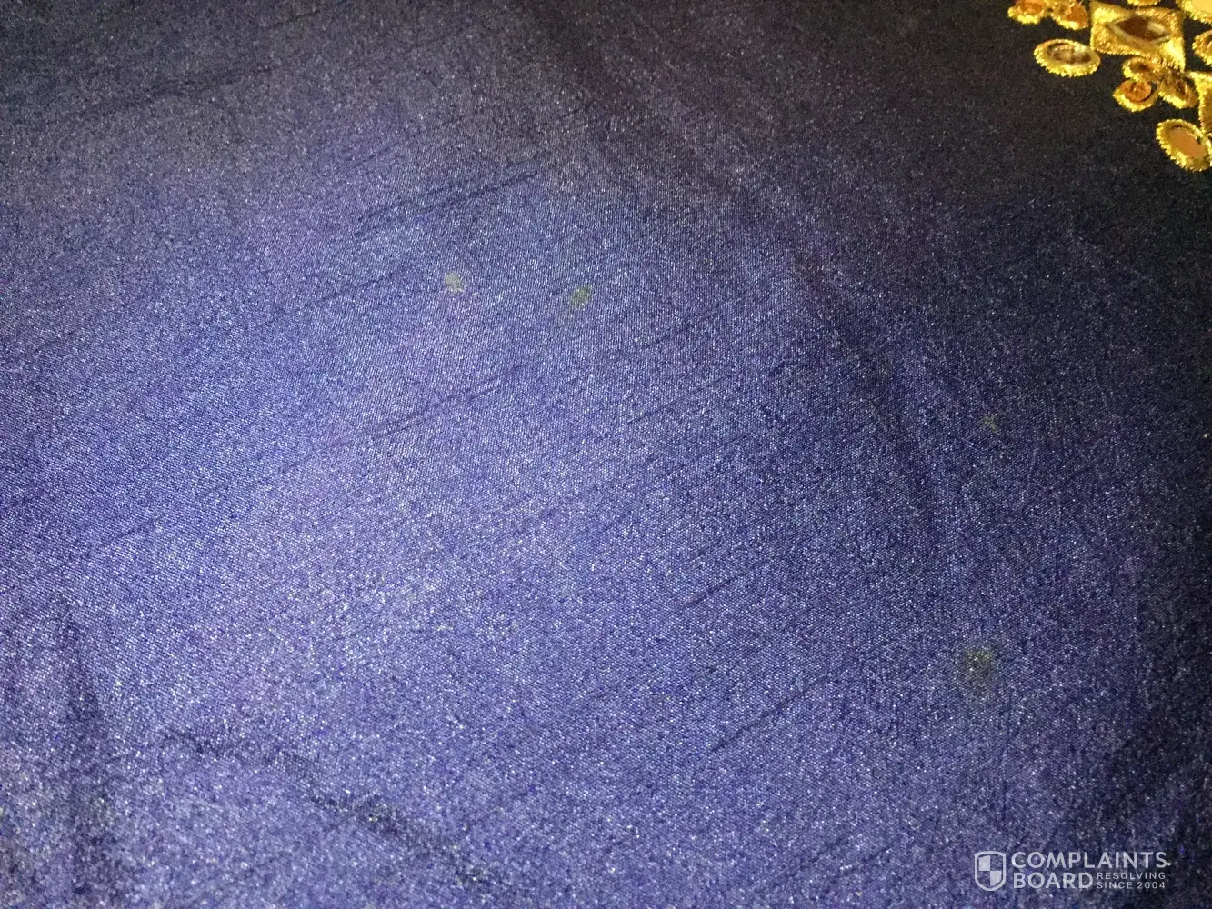 When I called regarding this discrepancy, the "smartass" answer I got from Yash was: the sari is double-shaded! This was not mentioned anywhere on the site and there was no tinge of grey from any angle in my sari. When I called again, Preeti answered saying I could return it based on return policy. When I reviewed the return policy, it said in RED, "We do not currently accept returns on stitched products"!