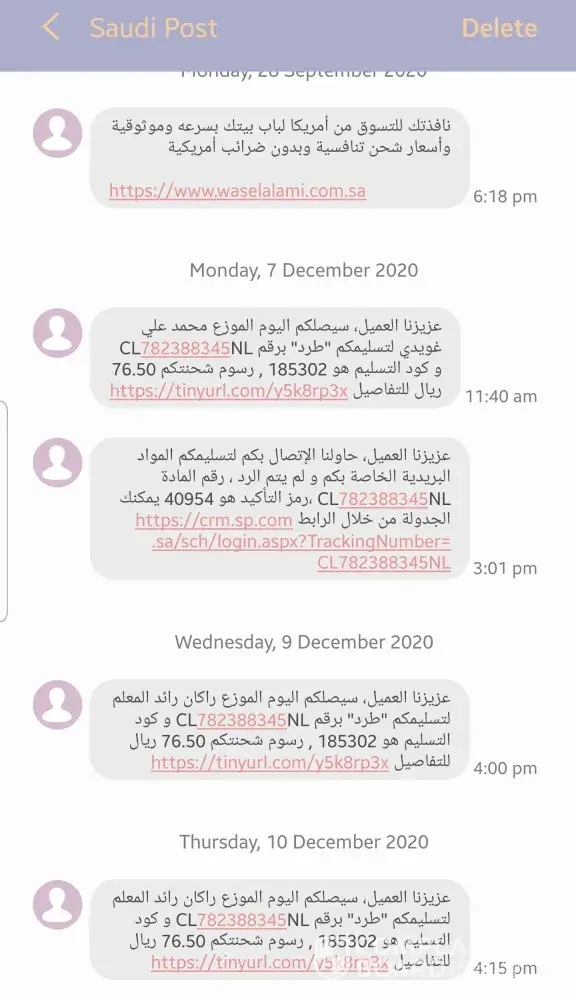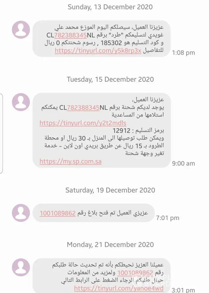 I received SMS from Saudi Post to collect a parcel/packet on 19th April 2021. I was wondering who send it to me. I went today finally on 3rd May 2021 to collect it and see what is it. Surprise to see a small packet from Singapore (unknow source) with a small ring (steel). But my name and address was perfect. While keep wondering about it, started googling in the net and found that sales brushing technique. Using cheap cost of Saudi post to send less weight worthless items to perfect address to show their increase in sales. I would like Saudi post to identify these problems and eradicate from your side. When I asked the counter person in Saudi post about the sender, he said unknown.