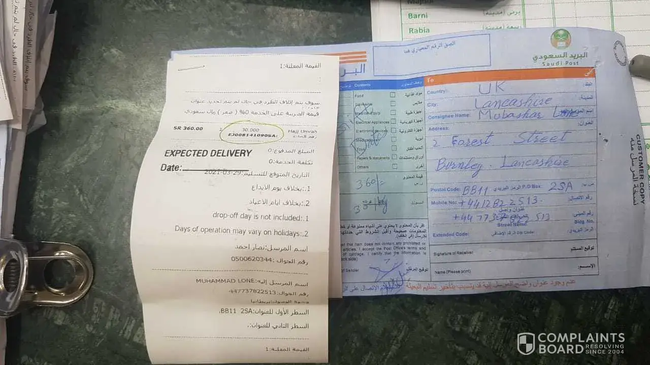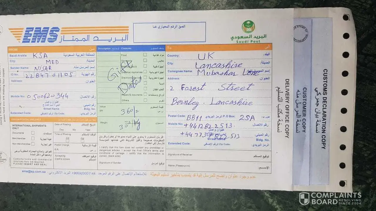 Dates parcel handed over to Saudi post more then one month ago